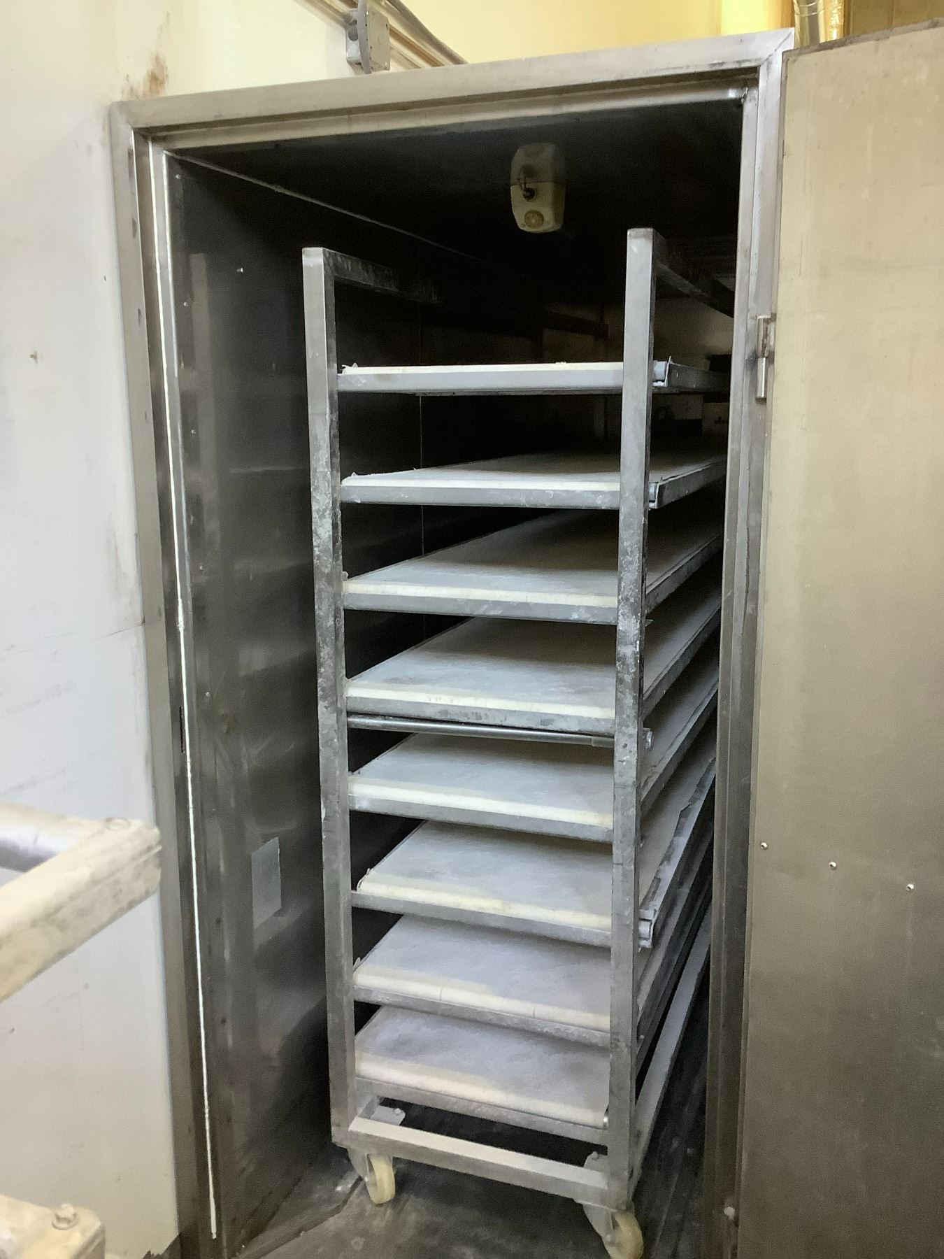 *ESTERA PANSERV STAINLESS STEEL PROOFING OVEN 114"X39"X79"H WITH MOBILE PROOFING RACK *REQUIRES ELECTRICIAN, PLUMBER, DISASSEMBLY, FORKLIFT OR CRANE AND SKATES*
