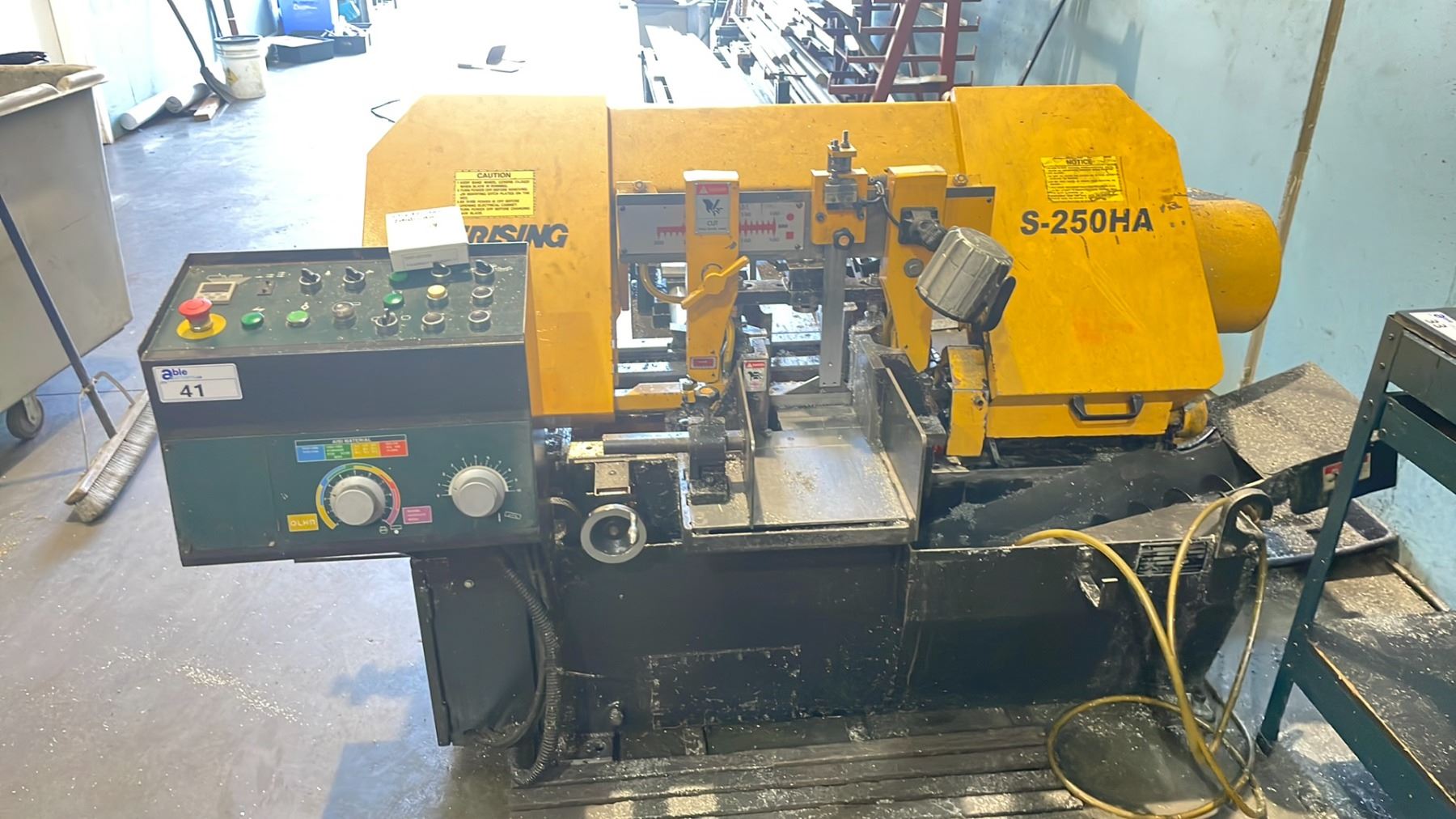 EVERISING S-250HA 20" HORIZONTAL INDUSTRIAL METAL CUTTING BAND SAW WITH ROLLER CONVEYOR SECTION ELECTRICAL HAS BEEN DISCONNECTED