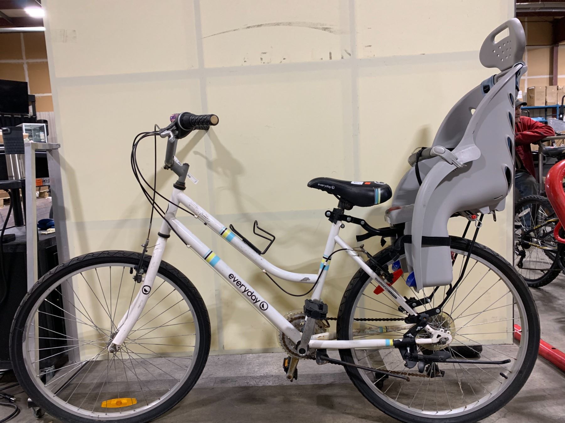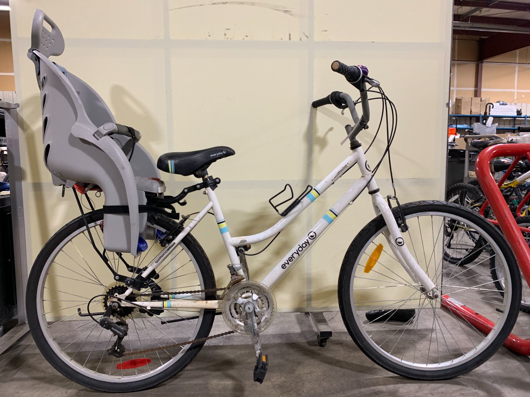 EVERYDAY TRAVELER WHITE 21 SPEED CRUISER STYLE BIKE WITH CHILD SEAT