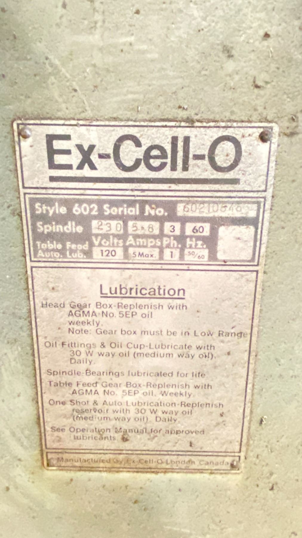 EX-CELL-O 602 VERTICAL RAM TURRET MILLING MACHINE **REMOVAL OF THIS PIECE REQUIRES HIAB/CRANE LIFT AND HEAVY MOVING SKATES**