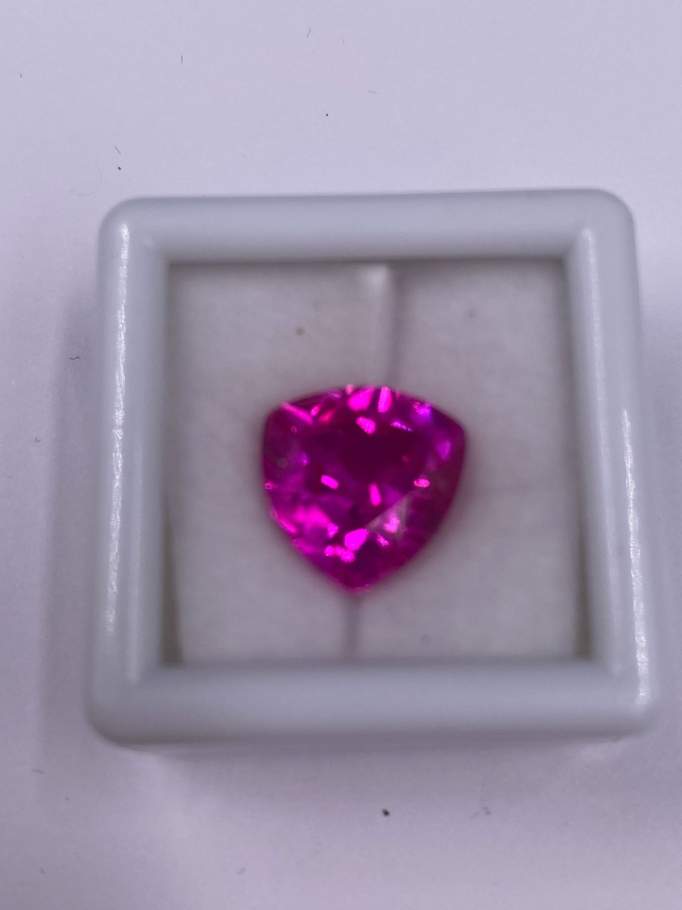 EXCEPTIONAL PINK SAPPHIRE LAB CREATED 6.70CT, 11.40 X 11.30 X 6.20MM, TRILLION CUT, EYE CLEAN CLARITY, IDEAL LUSTER