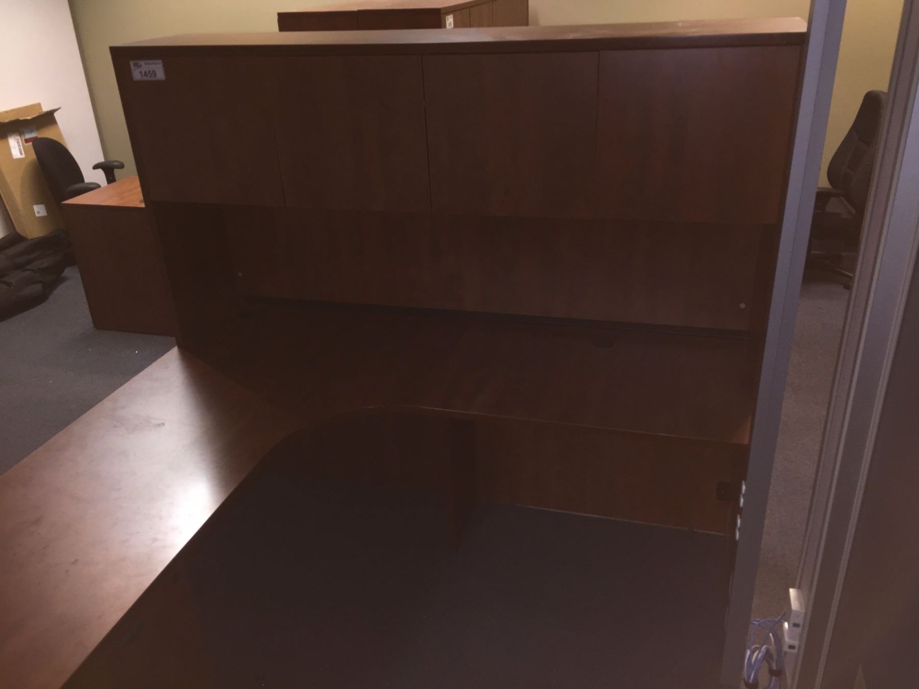 EXECUTIVE DESK, CHERRY L-SHAPE WITH 3 DRAWERS AND HUTCH