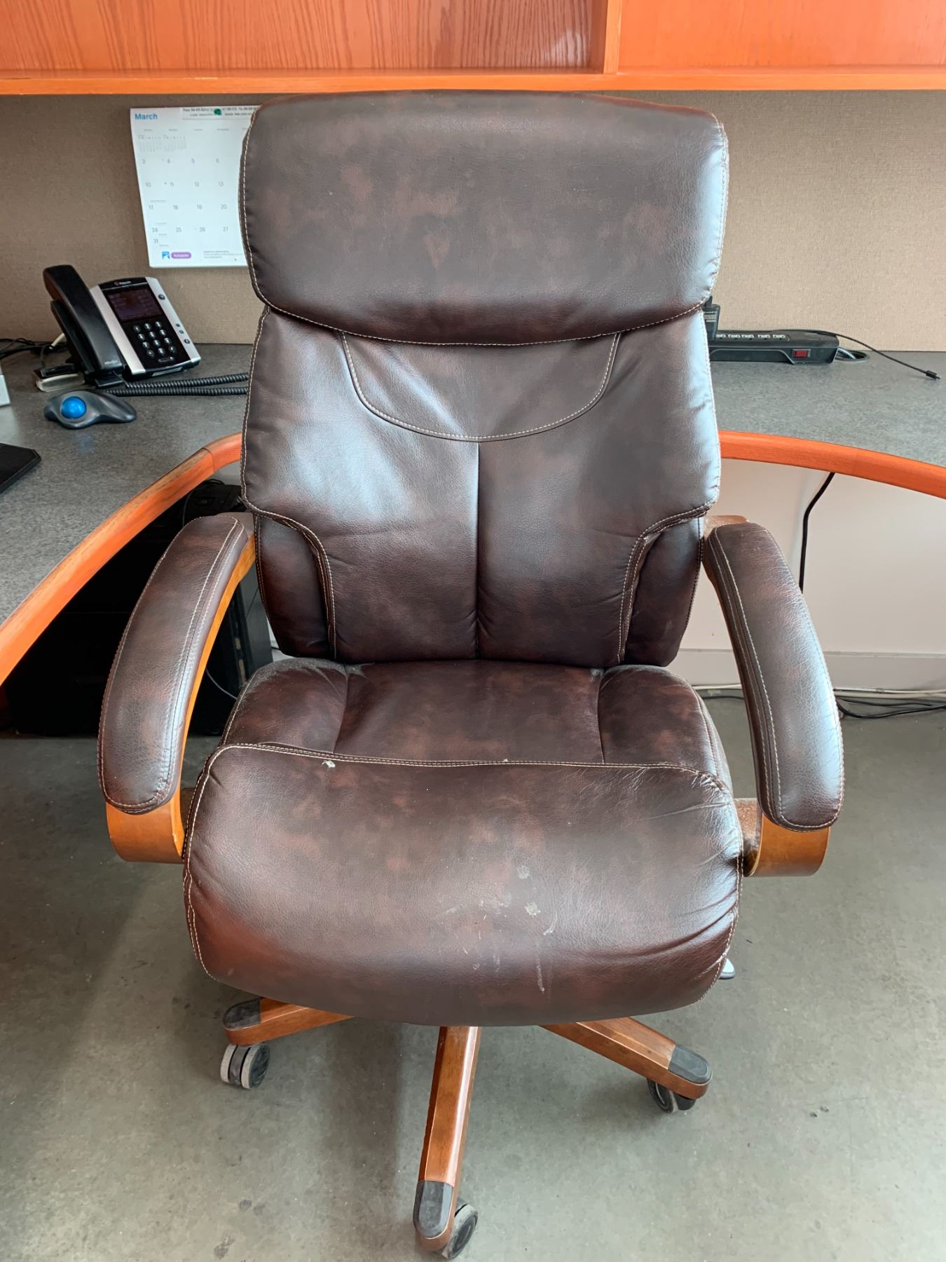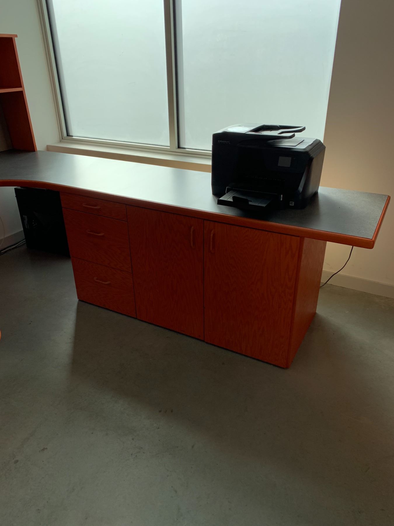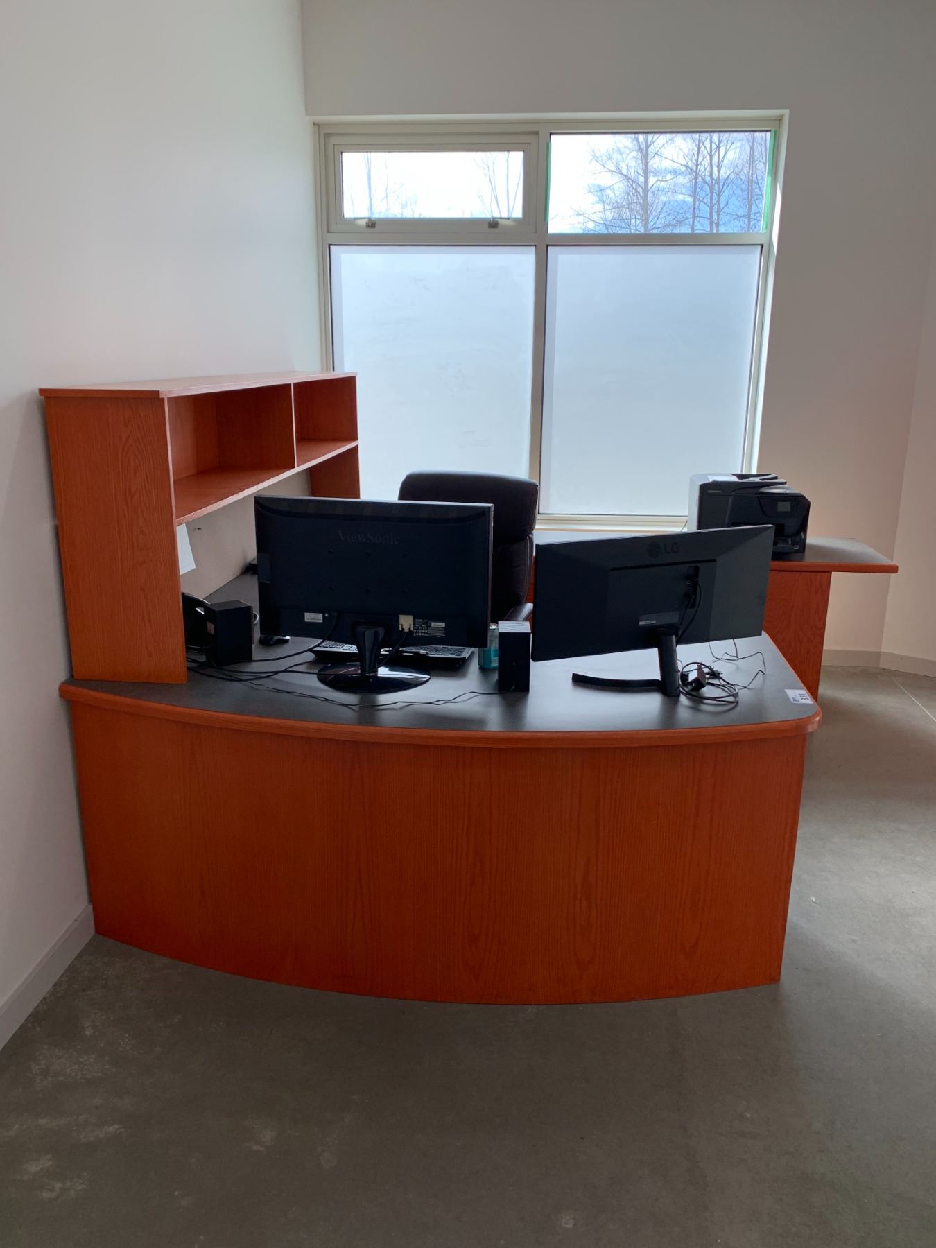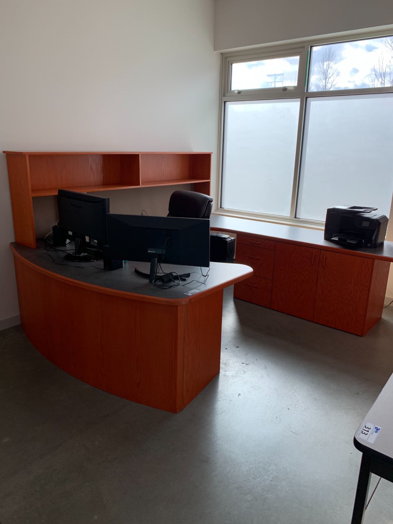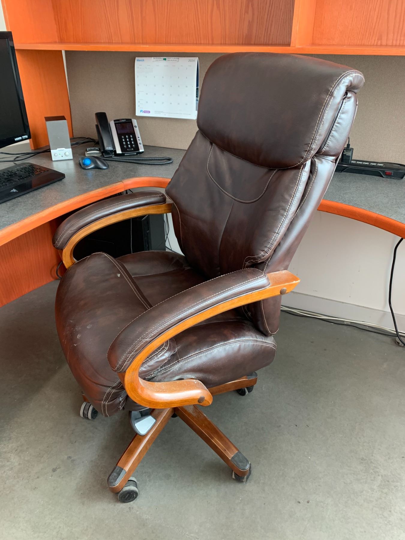 EXECUTIVE U-SHAPED SOLID WOOD WITH ARBORITE TOP DESK WITH LAZY BOY OFFICE CHAIR **COMPUTER EQUIPMENT NOT INCLUDED**