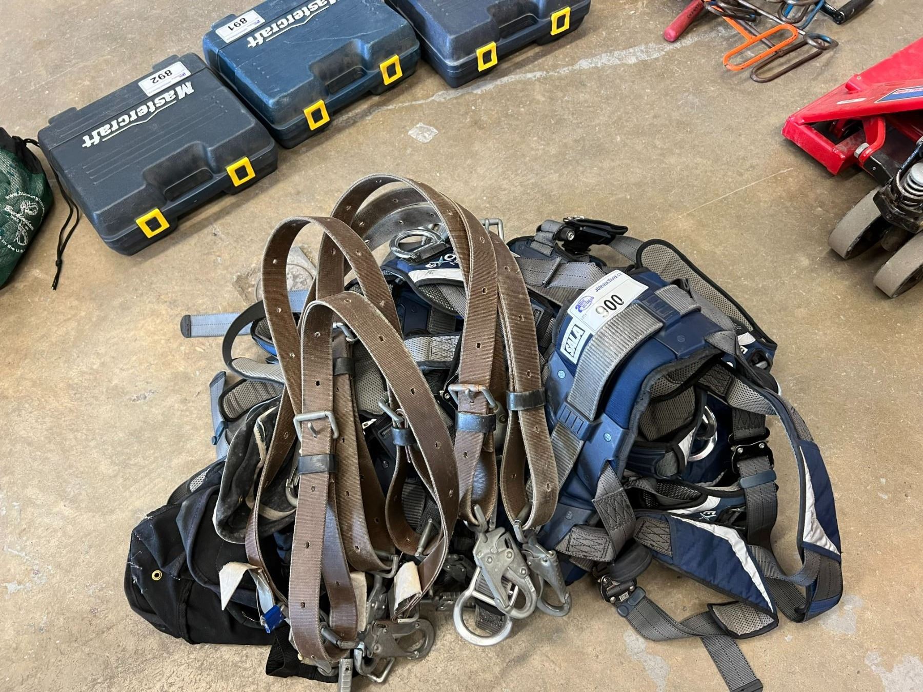 EXOFIT NEX DBI SALA CLIMBING SAFETY HARNESS. WITH TOOL POUCH & SAFETY STRAP X 5