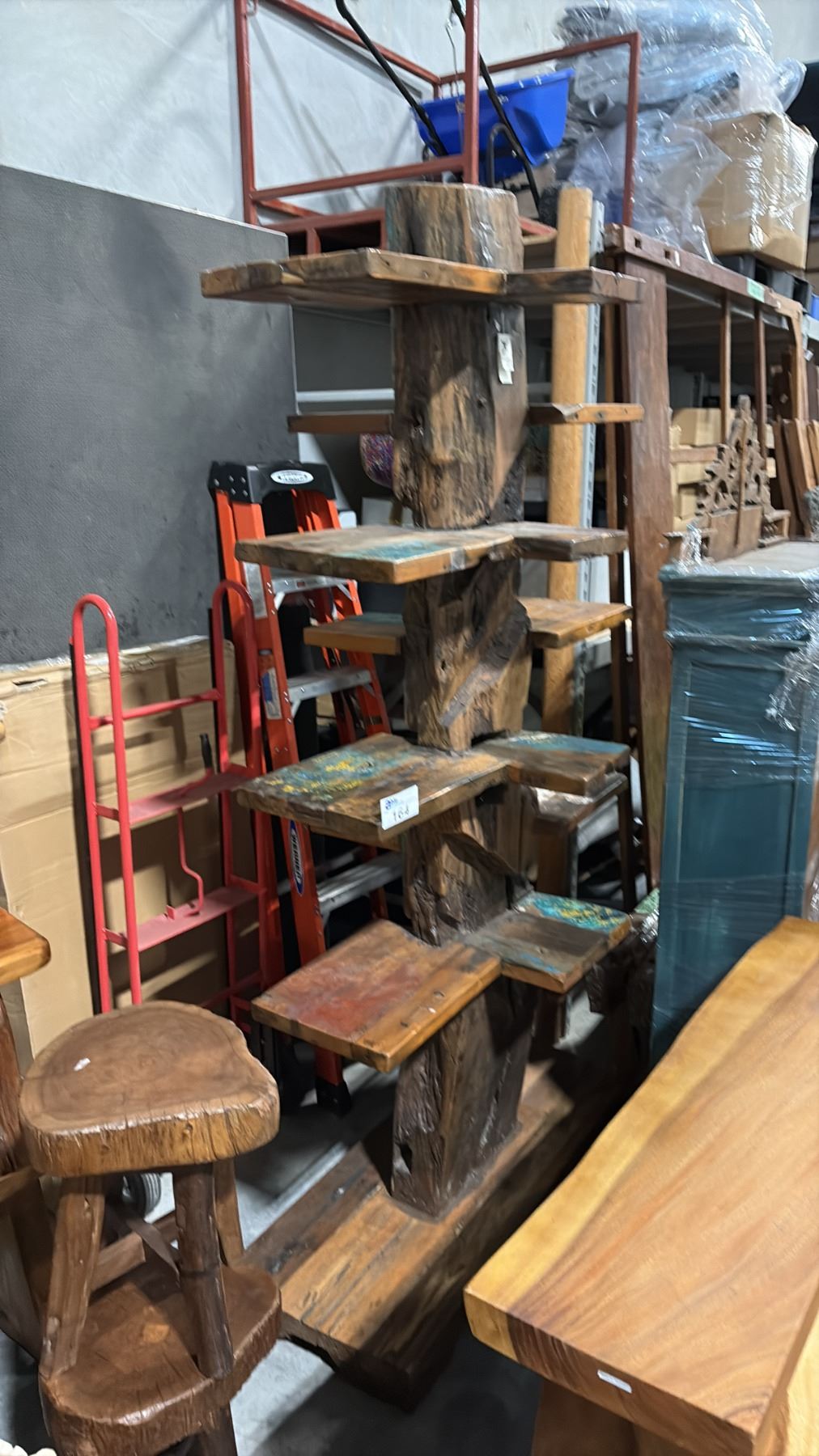 EXOTIC BOATWOOD 8 TIER DISPLAY SHELF APPROX 8'H