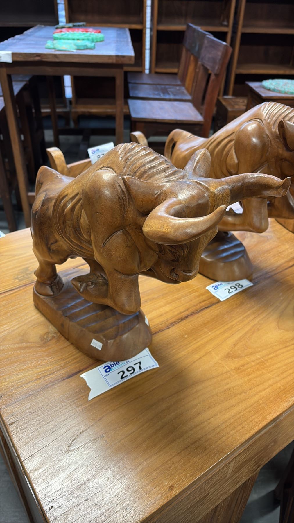 EXOTIC CARVED BULL STATUE 17"L X 13"H