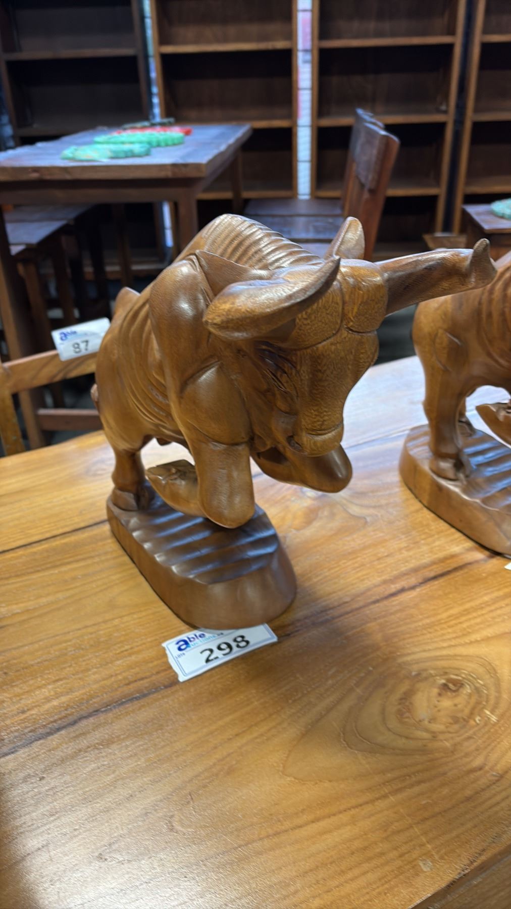 EXOTIC CARVED BULL STATUE 17"L X 13"H
