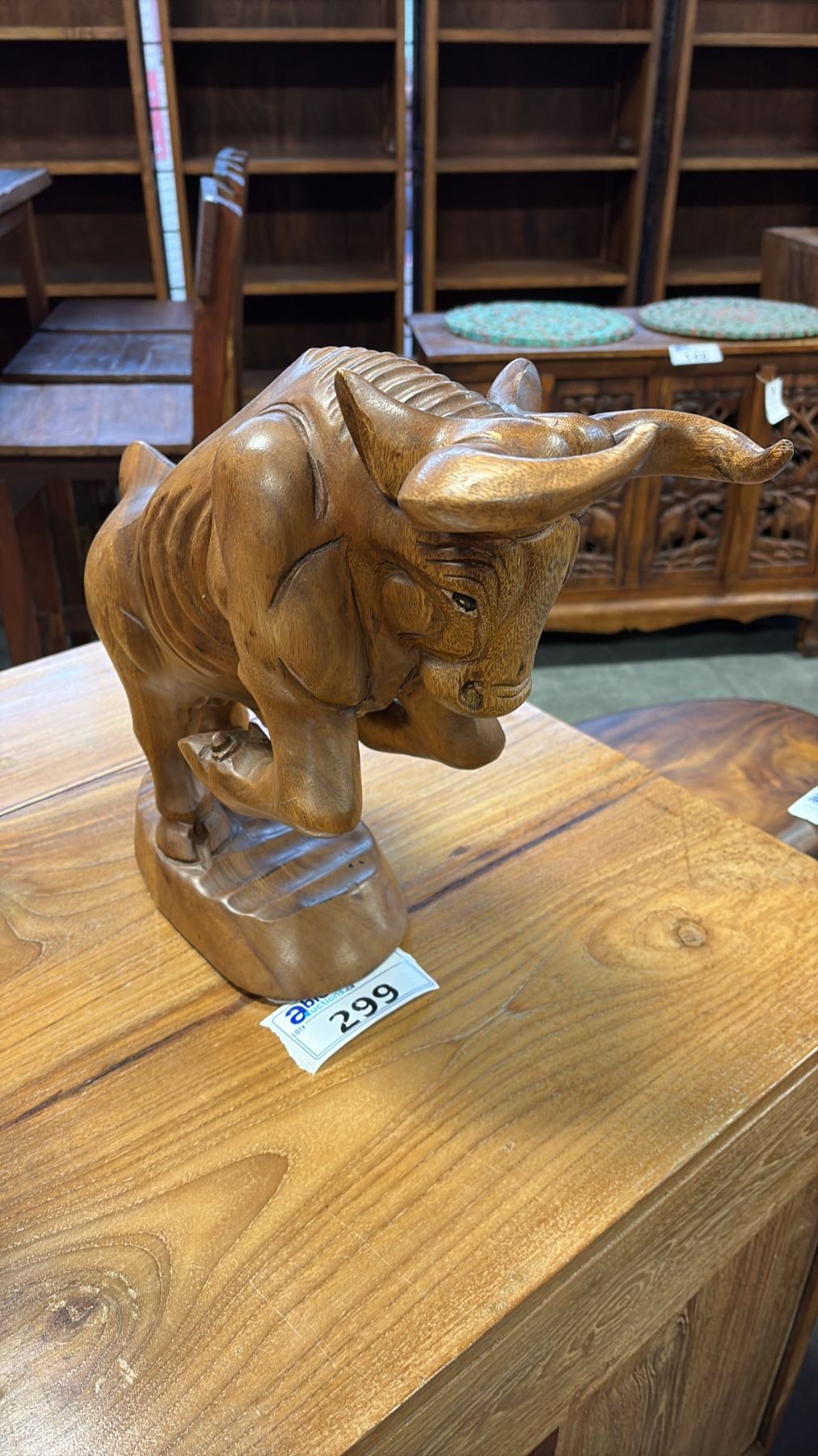 EXOTIC CARVED BULL STATUE 17"L X 13"H