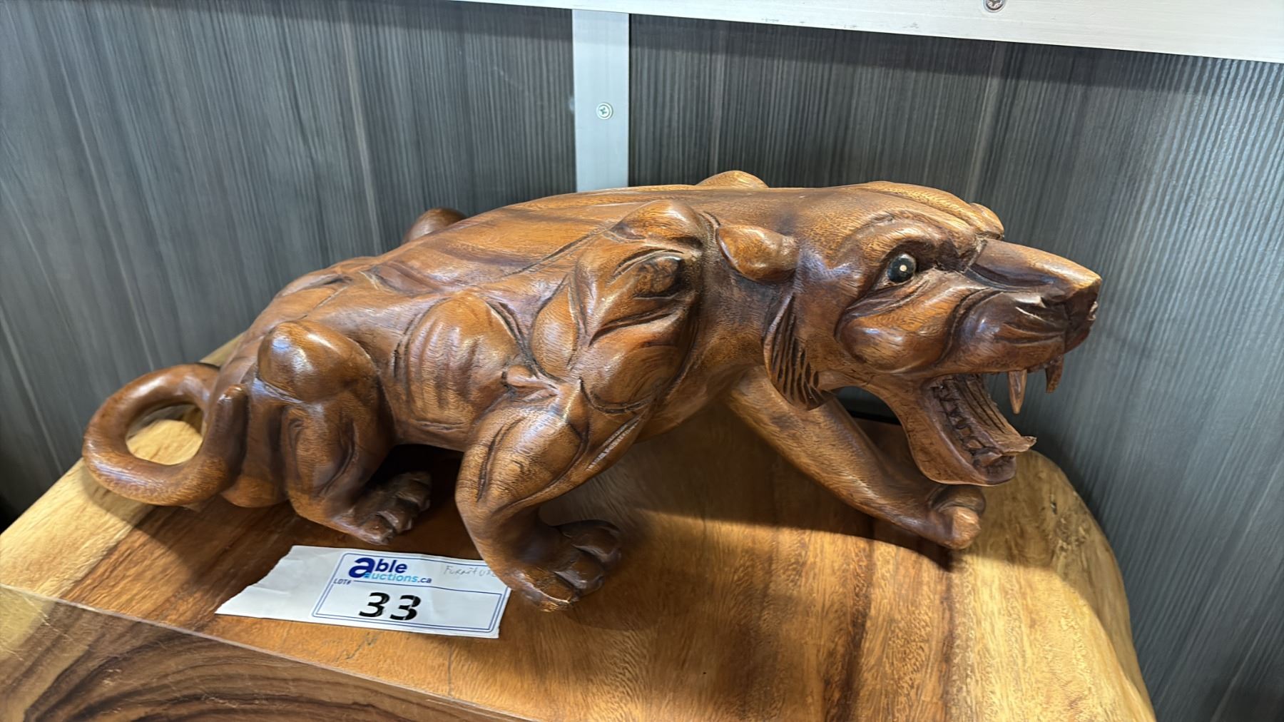 EXOTIC CARVED PANTHER STATUE 19"L X 9"H