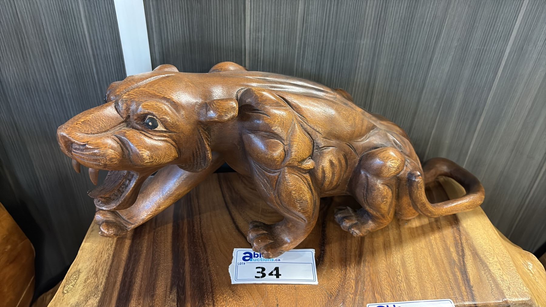 EXOTIC CARVED PANTHER STATUE 19"L X 9"H