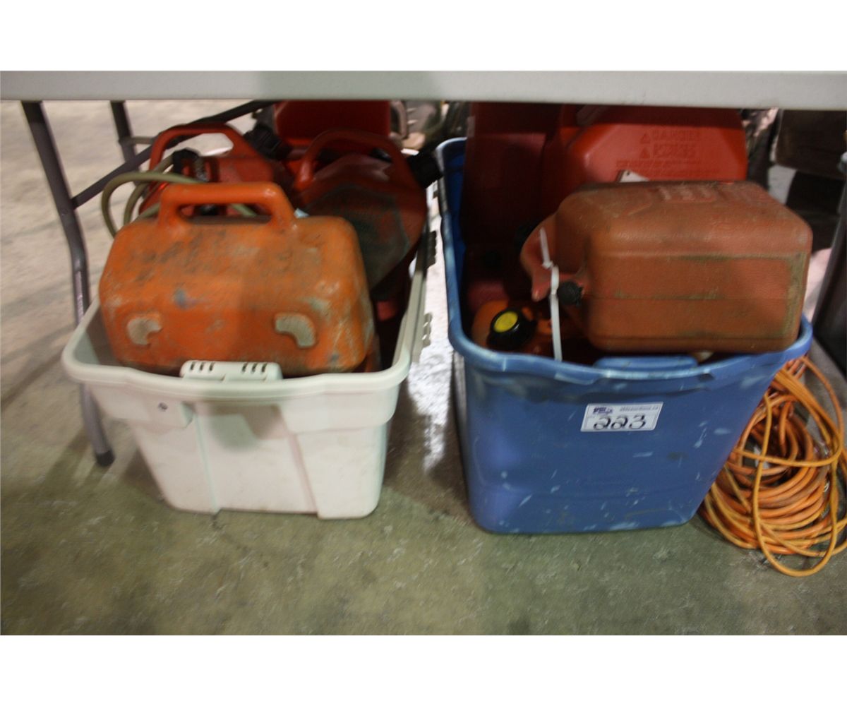 EXTENTION CORDS & 2 BINS OF JERRY CANS