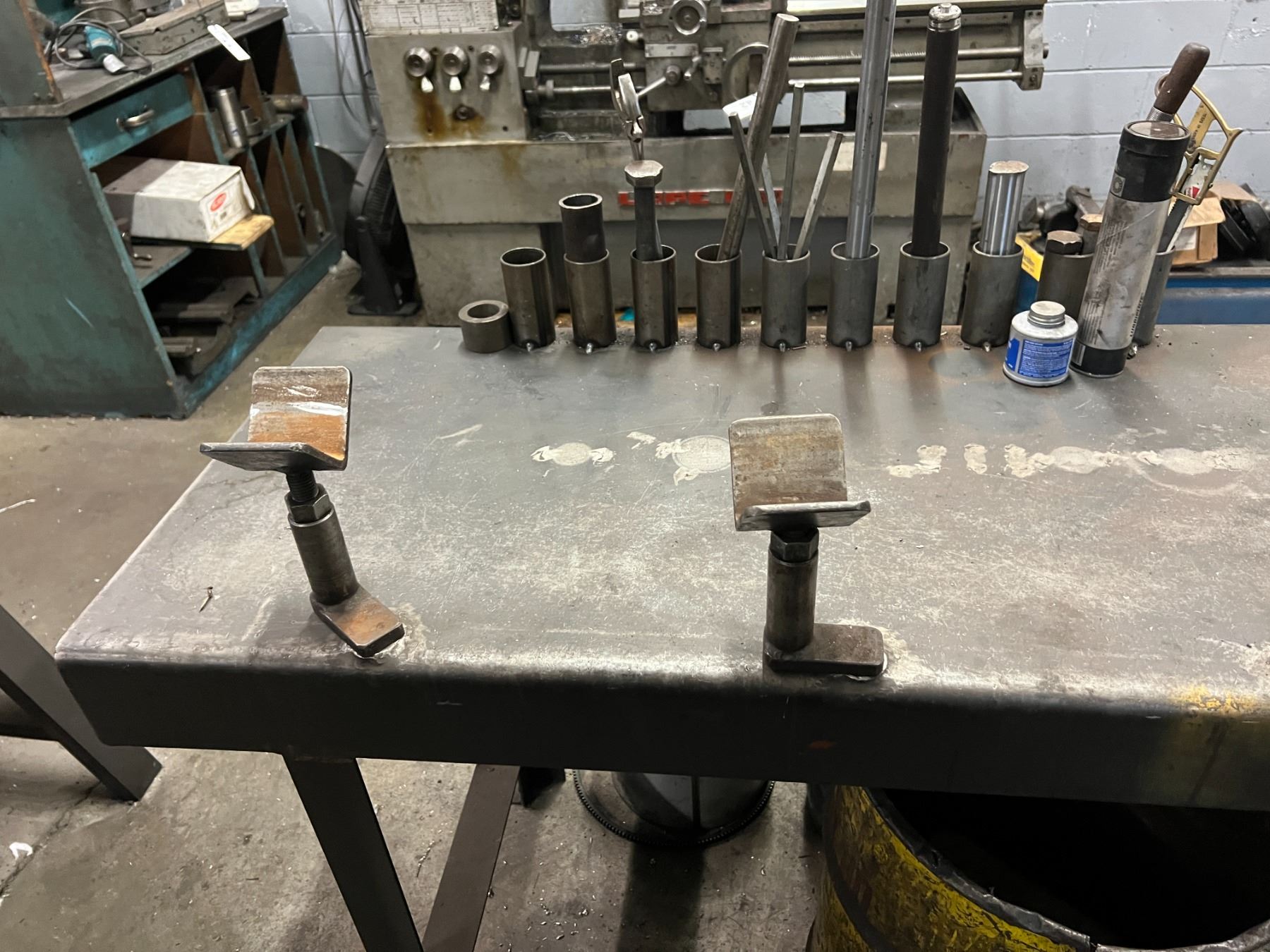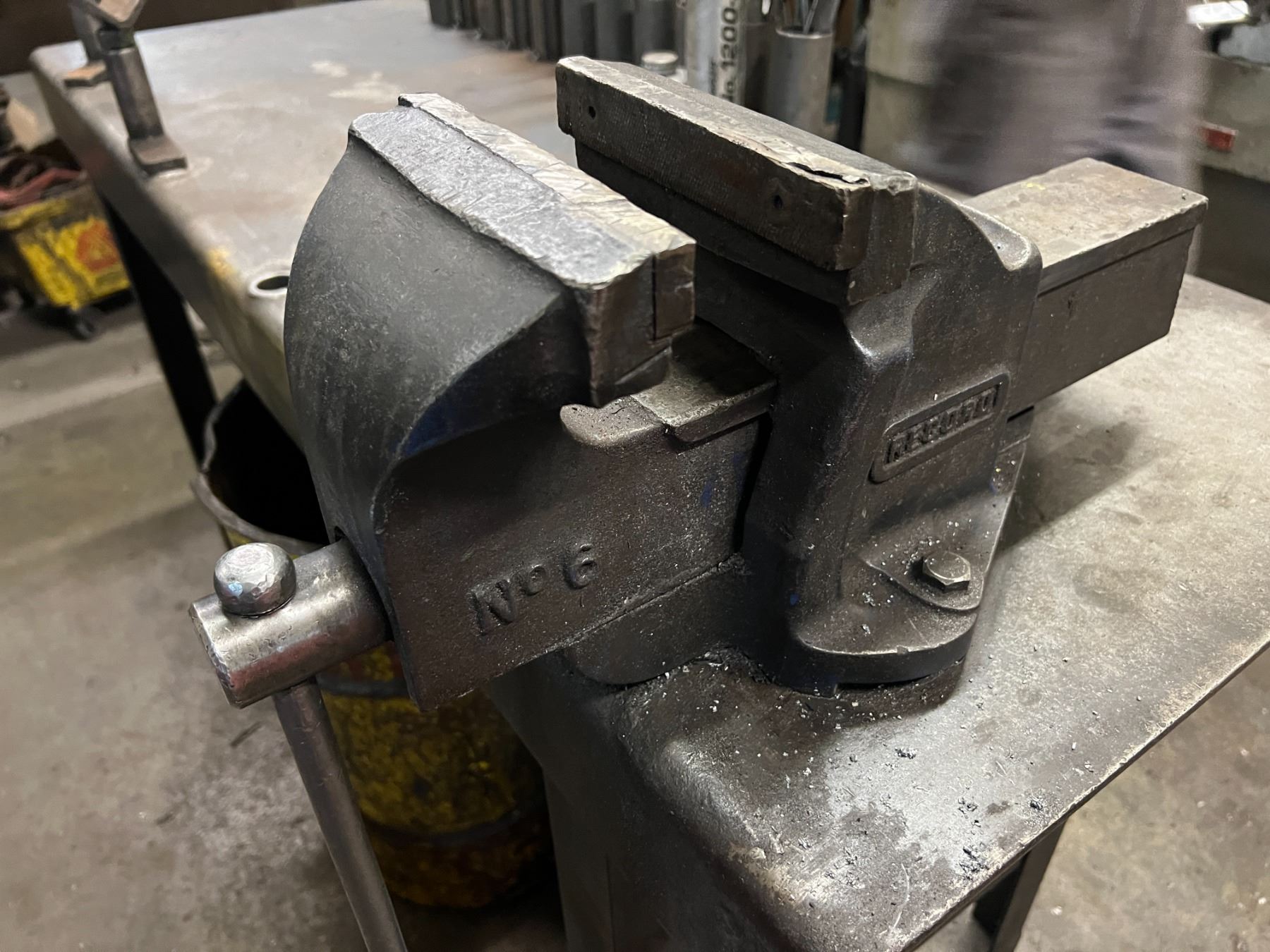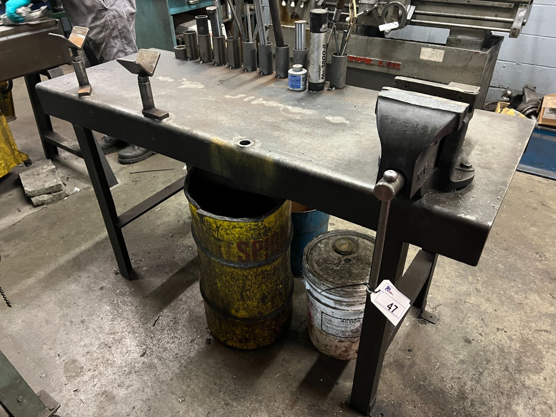 EXTRA HEAVY DUTY METAL WORKBENCH WITH #6 VICE & 5'X22" CUSTOM WORK TABLE.