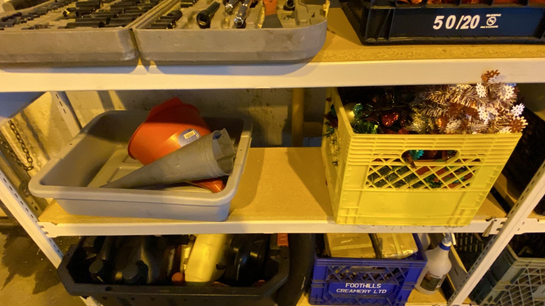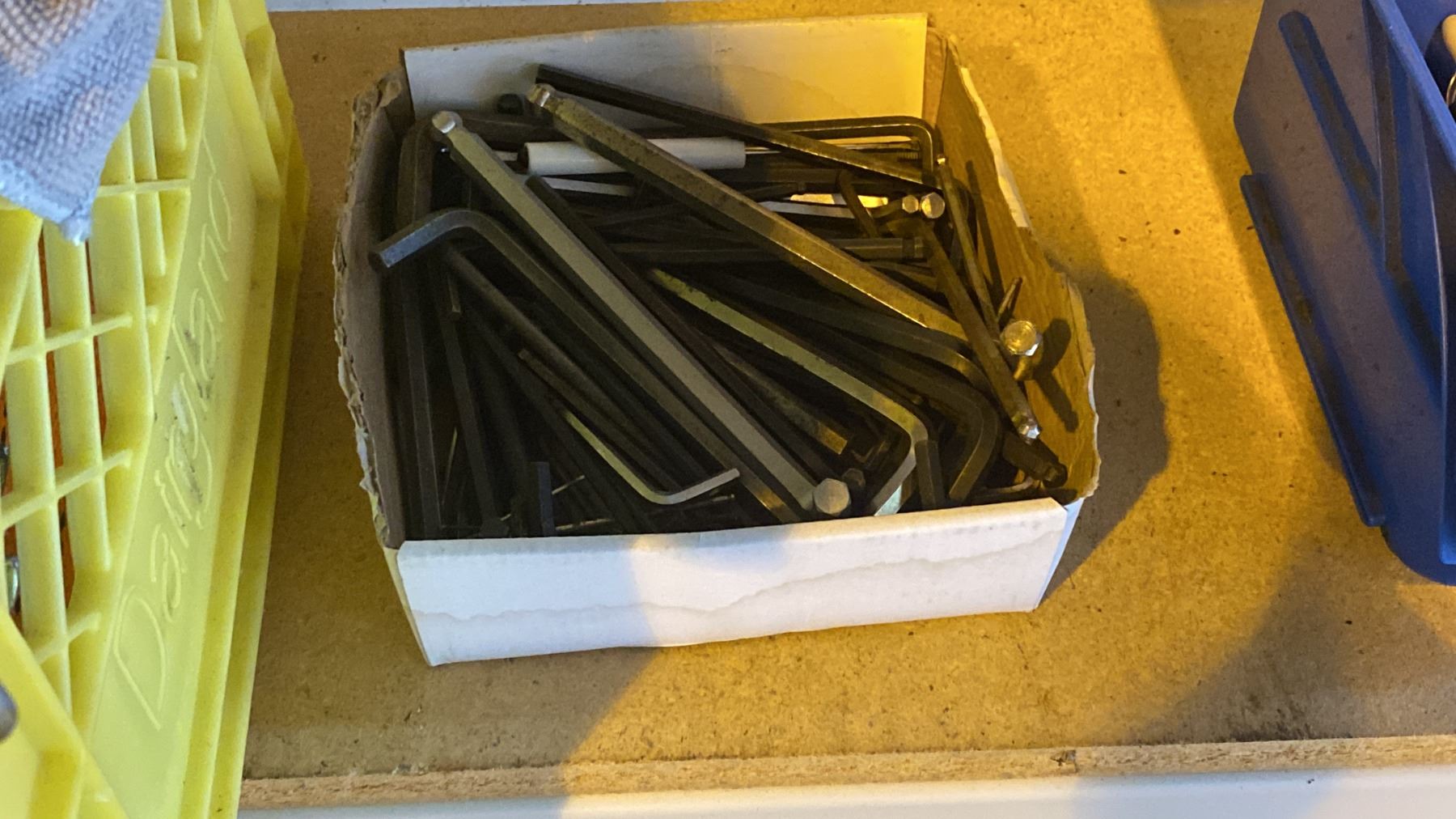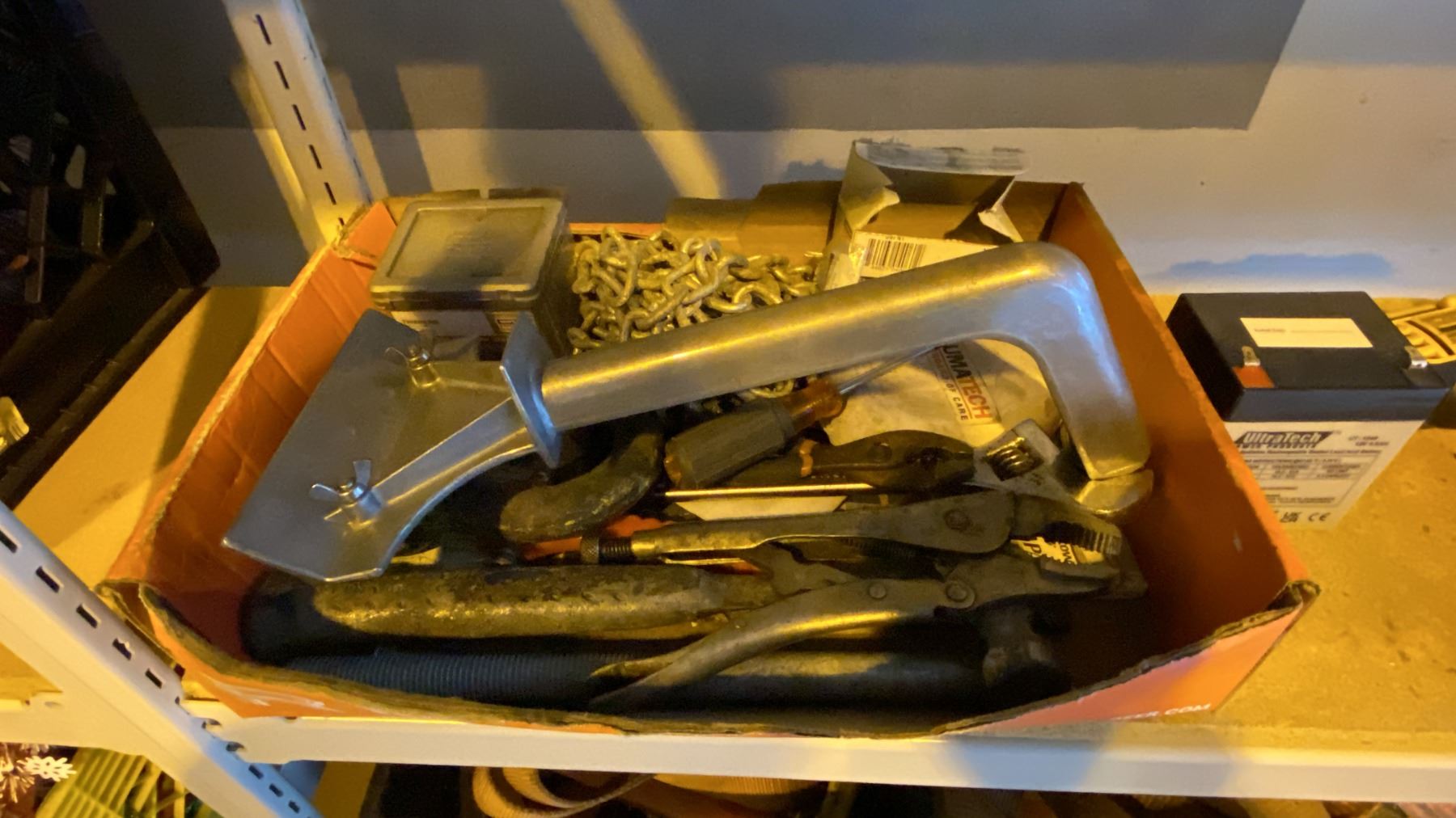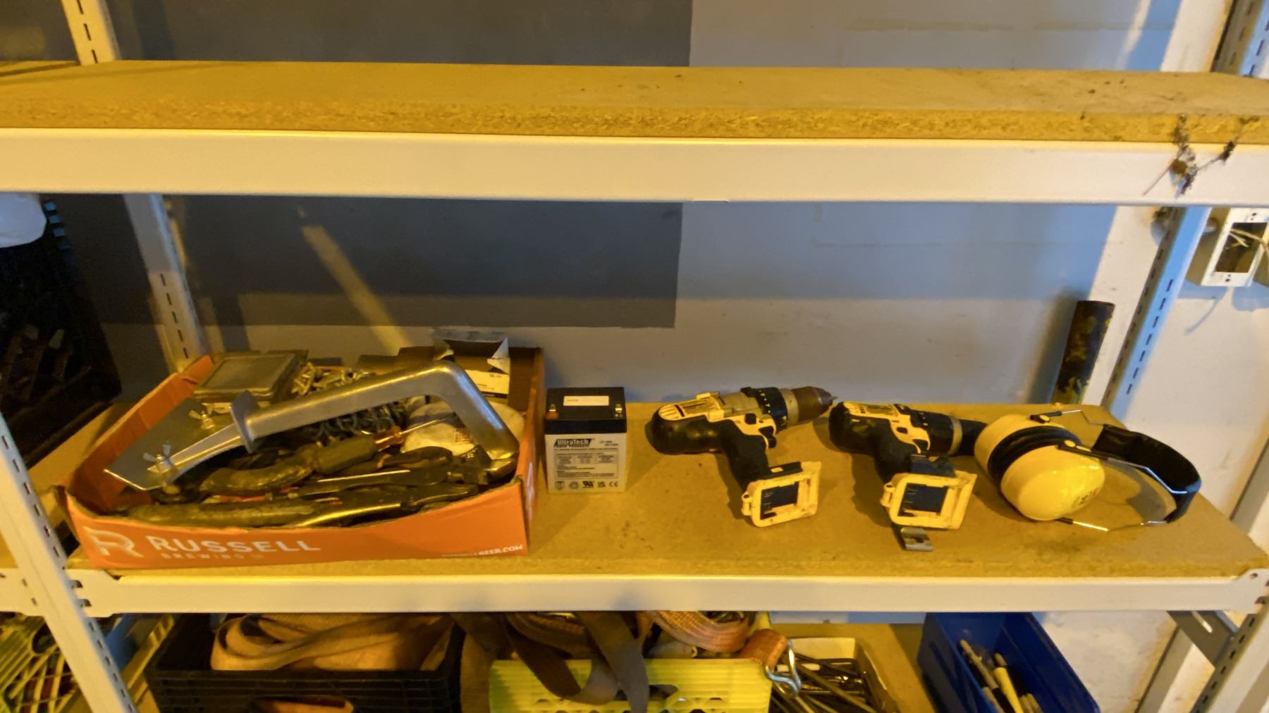 EZ RECK SHELVING SYSTEM AND CONTENTS - TOOLS AND ASSORTED MISCELLANEOUS ITEMS APPROX. 101" ACROSS X 13" WIDE X 72" HIGH