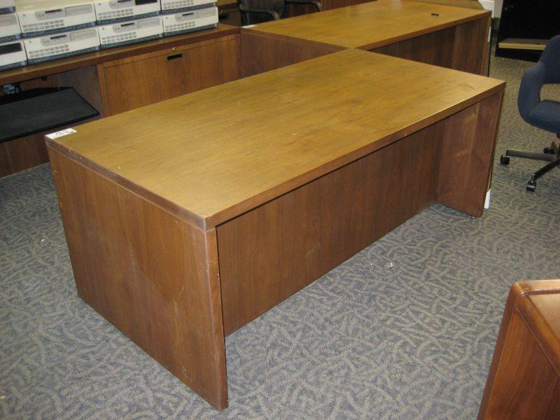 English Walnut Oak Double Pedestal Executive 2 Piece Desk & Credenza