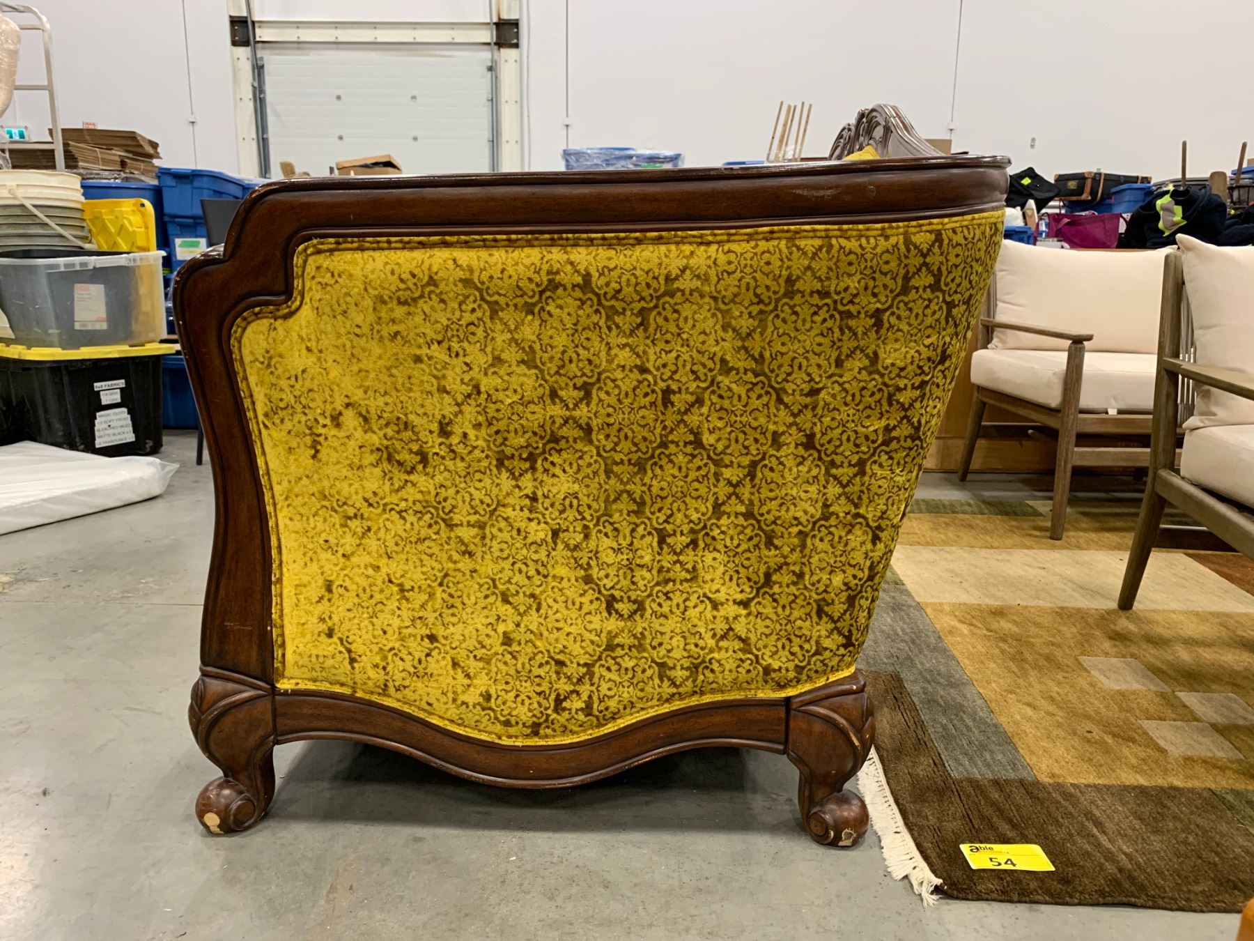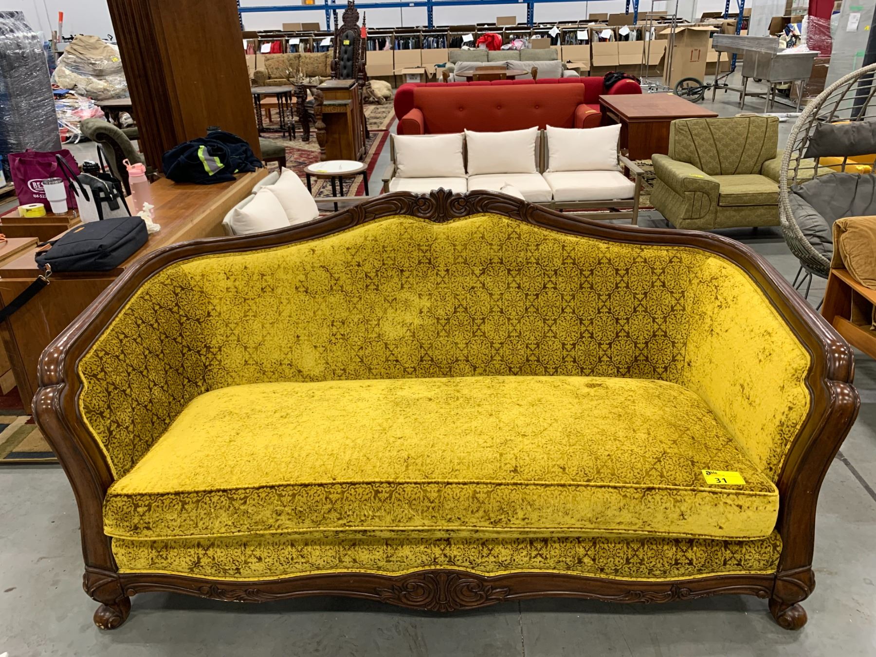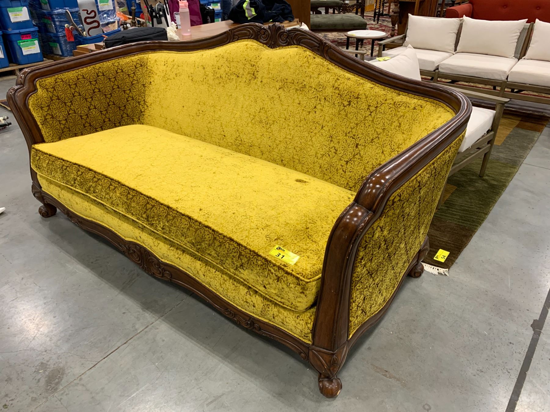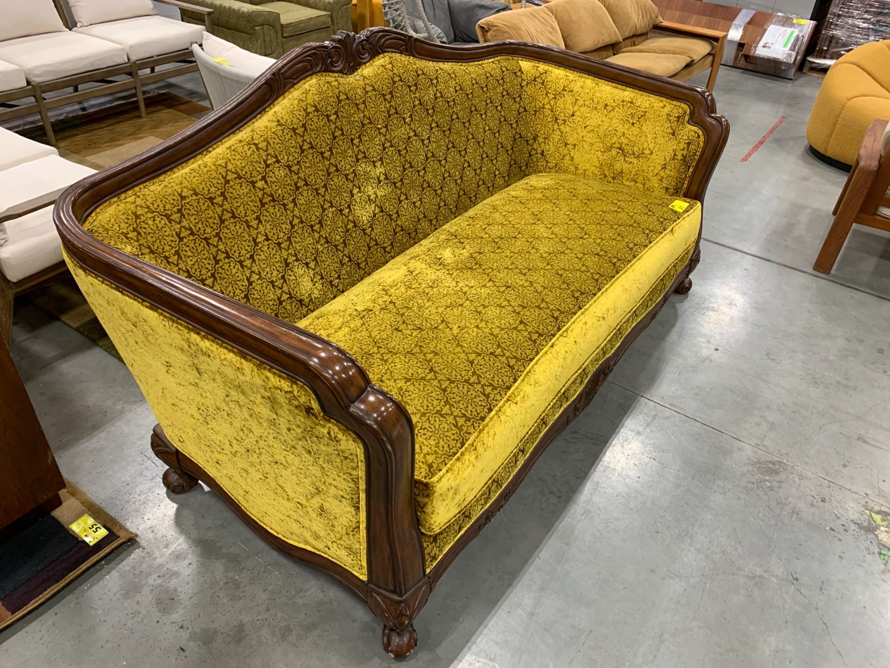 FABRIC AND CLAWFOOT CARVED SOFA 84 X 42 X 40"