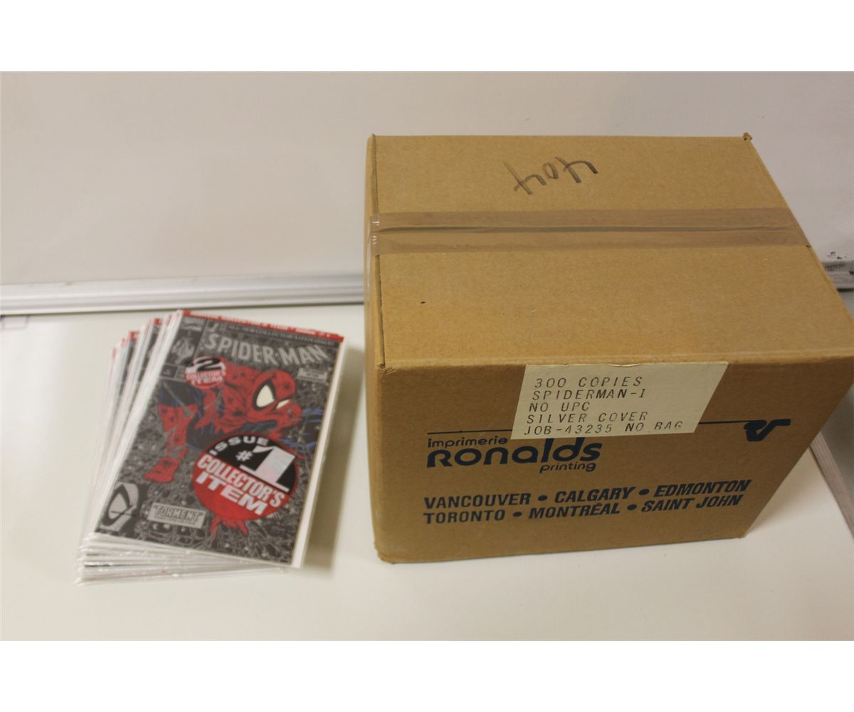 *FACTORY SEALED BOX OF SPIDER-MAN #1* 300 COPIES OF SPIDER-MAN #1, SEALED FOR ALMOST 25 YEARS & 18 FACTORY BAGGED COPIES. OVERSTREET 2013 TOP END 9.2 GUIDE ON THIS LOT IS $2760, OBVIOUSLY ALMOST EVERY BOOK HERE IS HIGHER GRADE THAN 9.2 NEVER TOUCHED, THERE IS LOTS OF CGC 9.9 TO 10 MINT POTENTIAL HERE - ON THE GPA COMICS PRICE TRACKING WEBSITE, THE AVERAGE PRICE PAID IN 2012 FOR A *SINGLE* 9.9 COPY WAS $159 & THE AVERAGE PAID FOR A *SINGLE* 10 COPY WAS $518. TONS OF VALUE HERE !