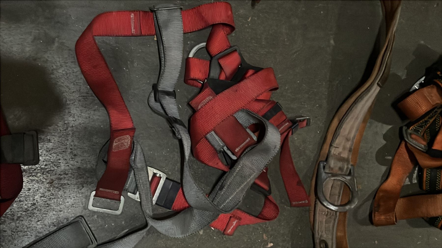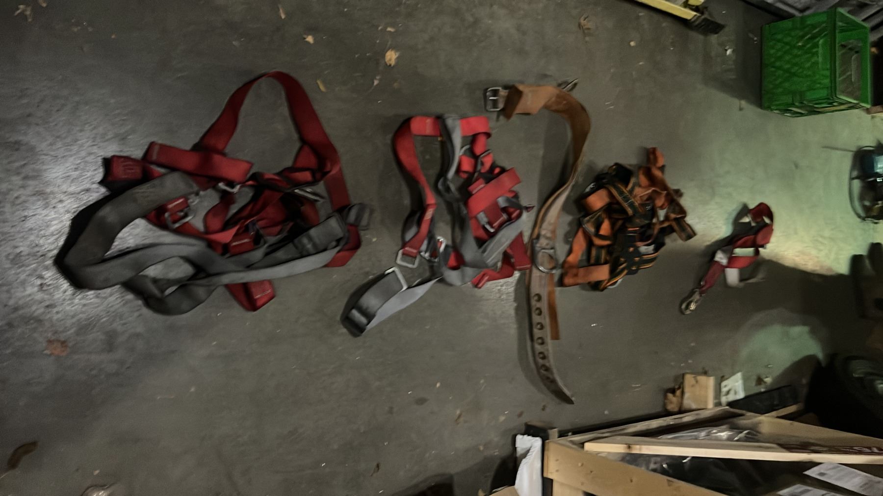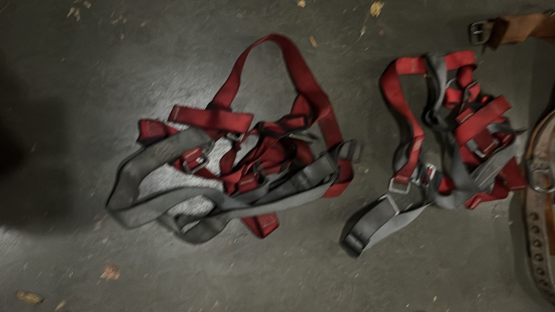 FALL PROTECTION EQUIPMENT. 3 HARNESSES, BELT, ETC.