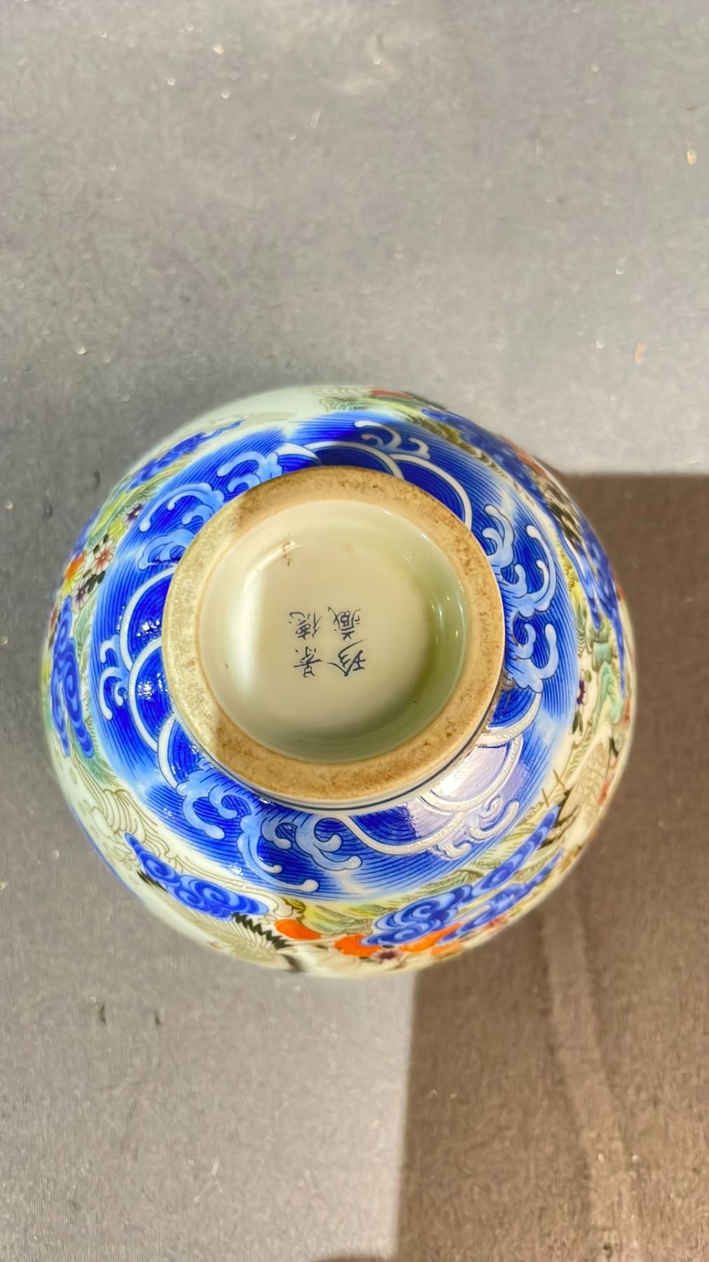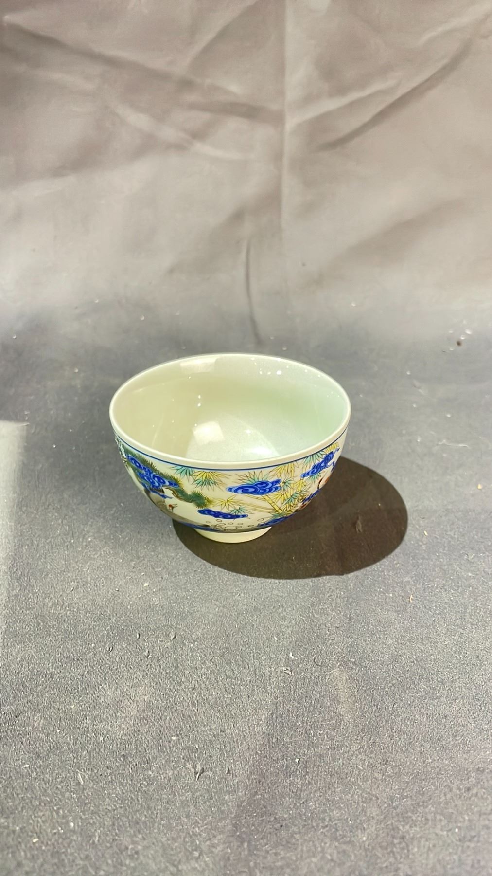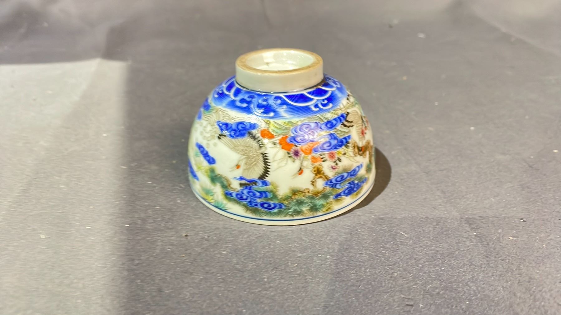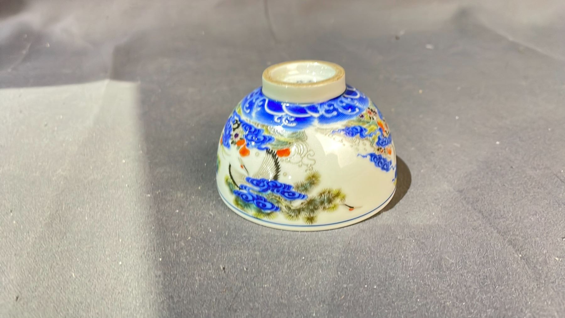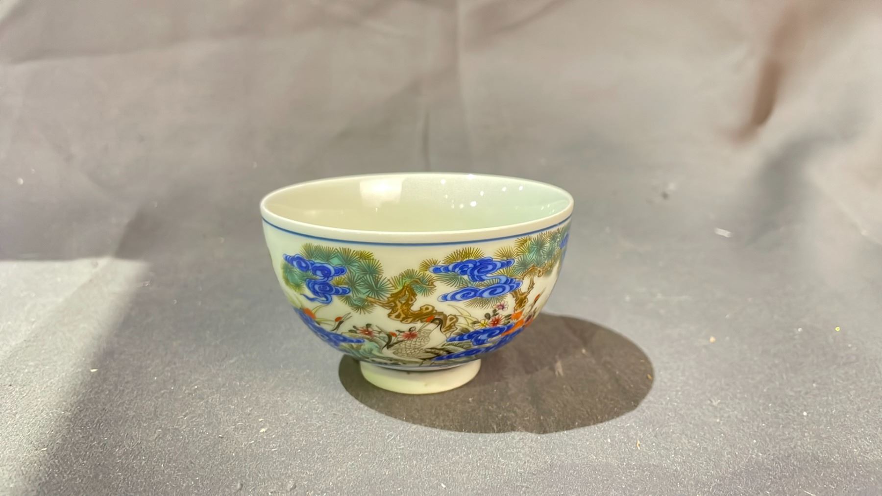FAMILLE ROSE CRANE OF LONGEVITY CUP APPROX 2" HIGH X 3" WIDE