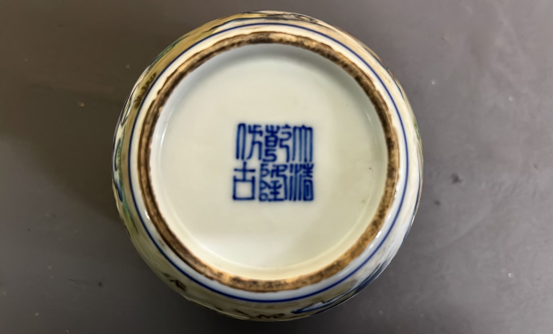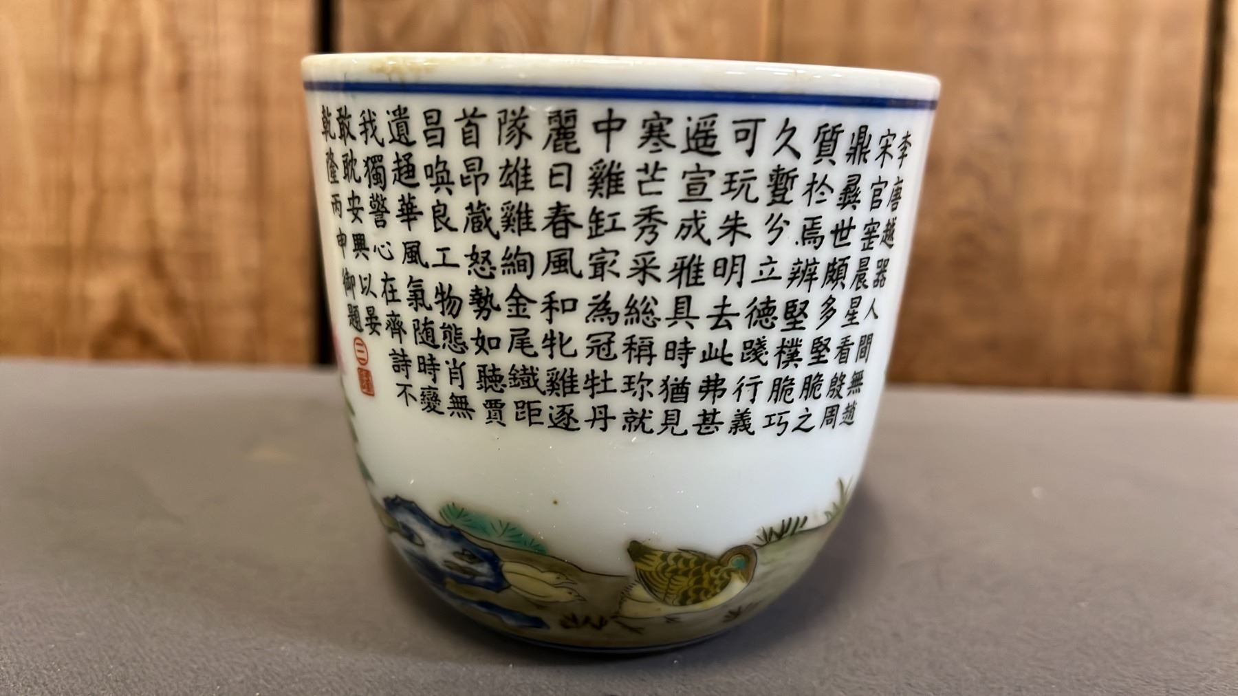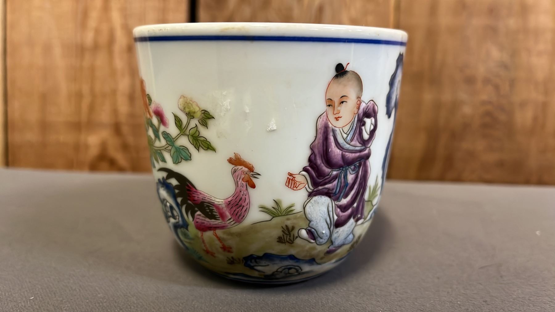FAMILLE VERT CALLIGRAPHY ROOSTER CUP