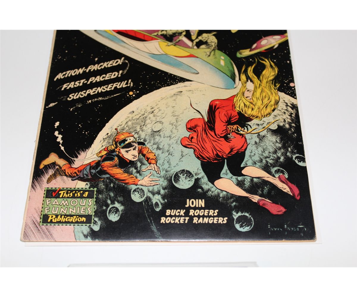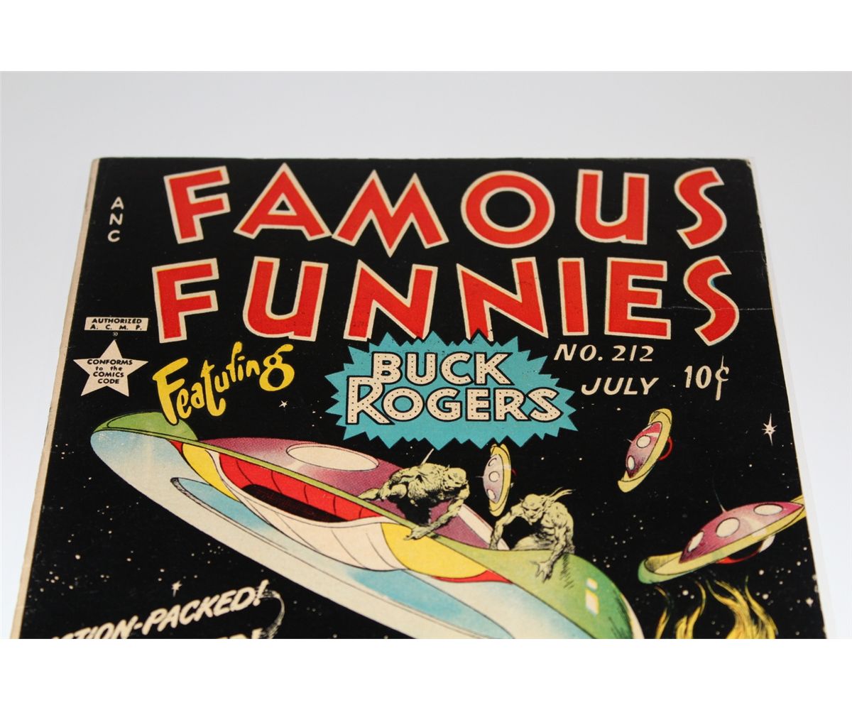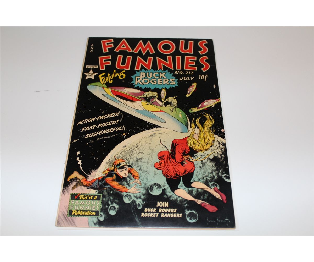 FAMOUS FUNNIES #212 (1954) BUCK ROGERS, FRAZETTA COVER. THIS IS A HIGH GRADE, GORGEOUS COPY! SHARP, TIGHT, GLOSSY & SUPPLE WITH VERY MINIMAL WEAR. RARE IN GRADE, TOUGH BLACK COVER. A GEM!