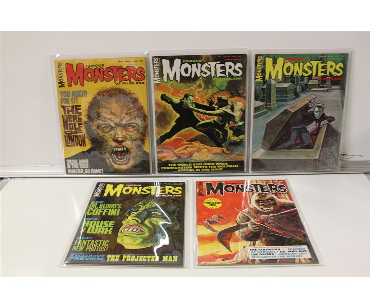 FAMOUS MONSTERS OF FILMLAND 1960'S RUN #41 - 45 (5) SHARP ISSUES FROM 1966 - 67. HIGH GRADE AVERAGE.