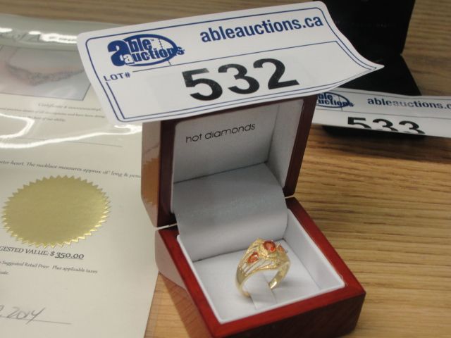 FANCY ORANGE QUARTZ & GENUINE DIAMOND DINNER RING.  STERLING SILVER WITH GOLD FINISH.