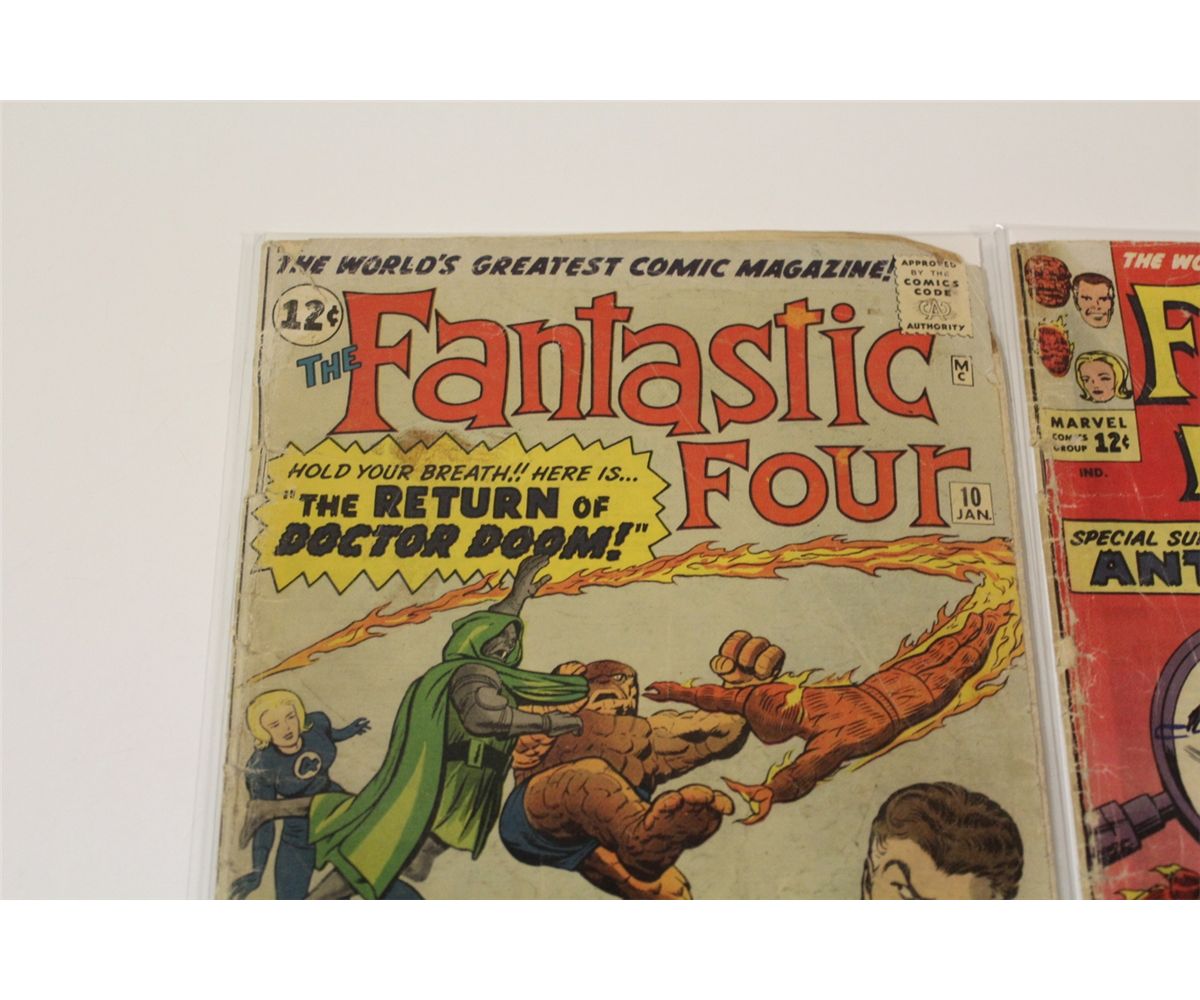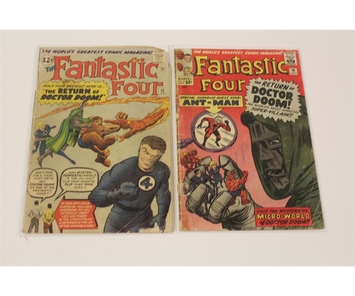 FANTASTIC FOUR #10 & 16 (1963) #10 LEE & KIRBY APP. IN STORY, #16 - 1ST ANT-MAN X-OVER. LOWER GRADE, COVERS & CF ATTACHED, SUPPLE, COMPLETE. SOLID BOOKS.