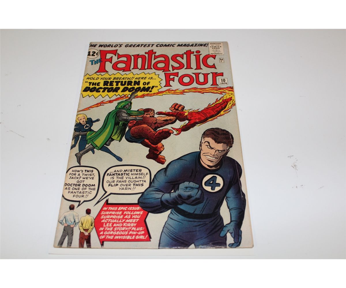 FANTASTIC FOUR #10 (1963) LEE & KIRBY APPEAR IN STORY. VERY SOLID LOWER MID TO MID GRADE COPY, TIGHT, GLOSSY & SUPPLE. NICE!