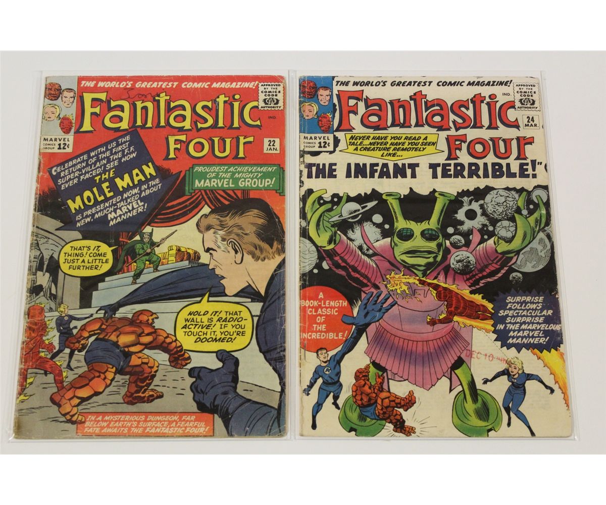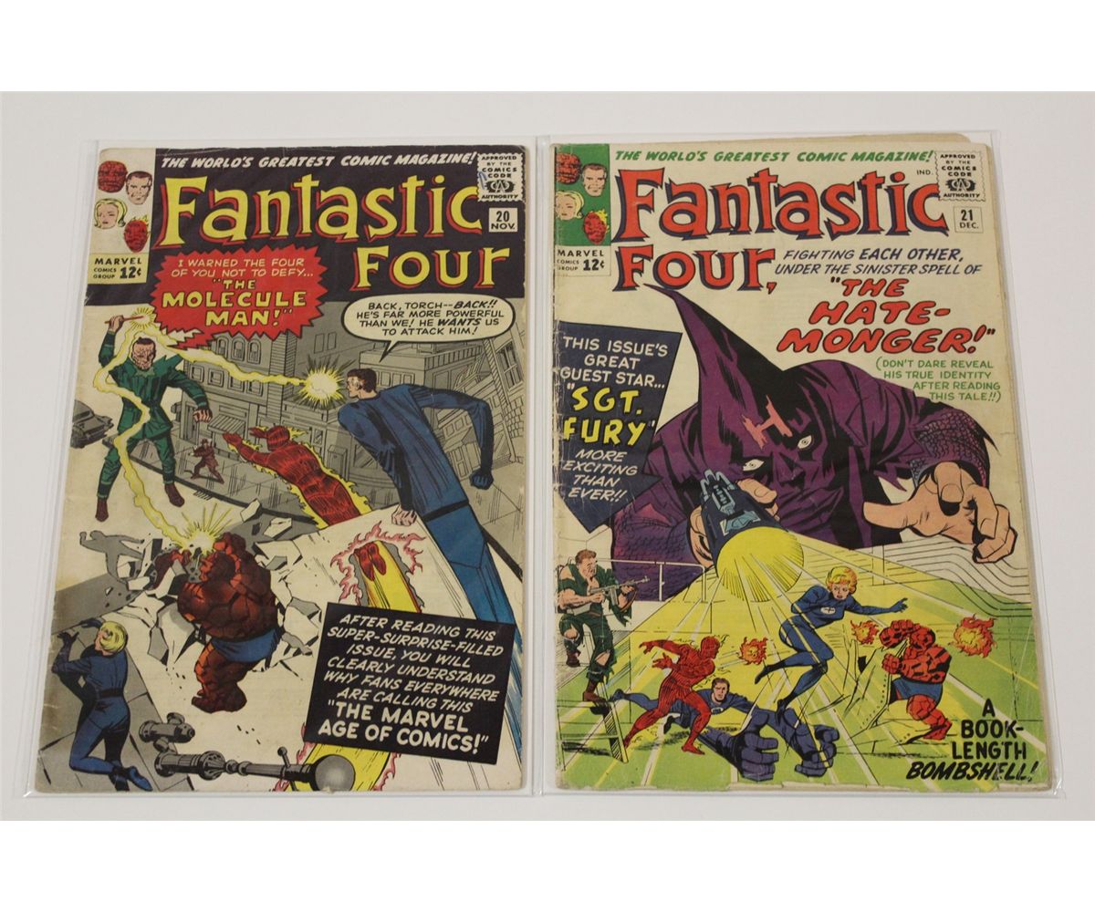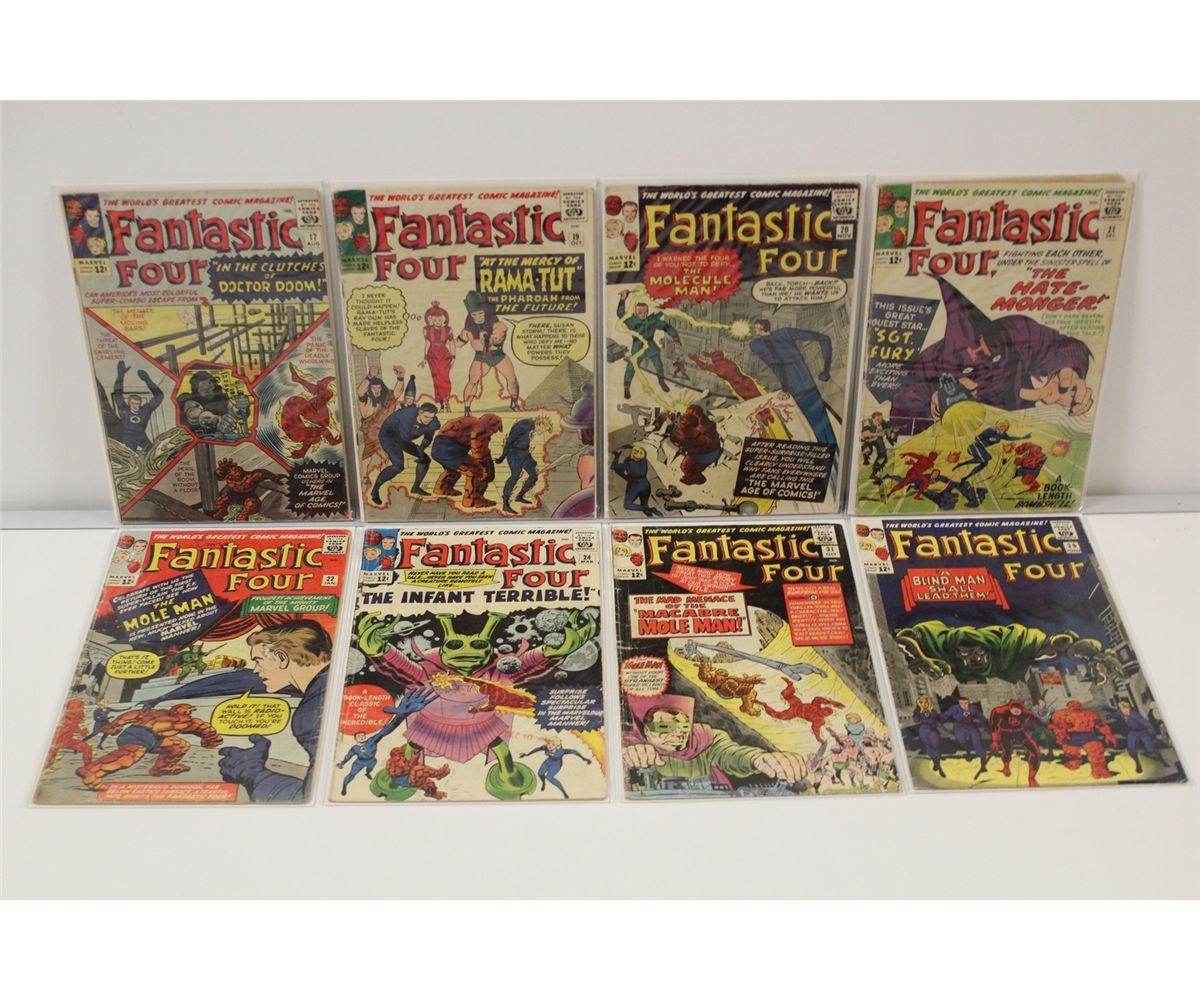 FANTASTIC FOUR #17, 19-22, 24, 31 & 39 (1963-65) LARGE LOT OF 8 EARLY FF'S! #17 - VS. DR. DOOM, #20 - 1ST APP. MOLECULE MAN, #21 1ST SGT. FURY X-OVER. ALL 8 HAVE 1 AD PAGE MISSING (DOES NOT AFFECT STORIES) QUALIFIED LOWER MID TO MID GRADE AVERAGE WITH ALL COVERS ATTACHED, GLOSSY, TIGHT & SUPPLE, VERY NICE RUN!