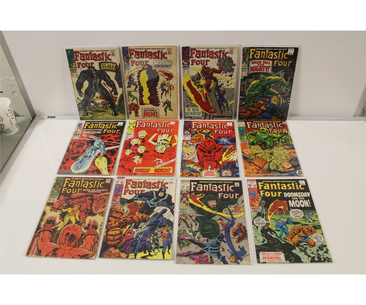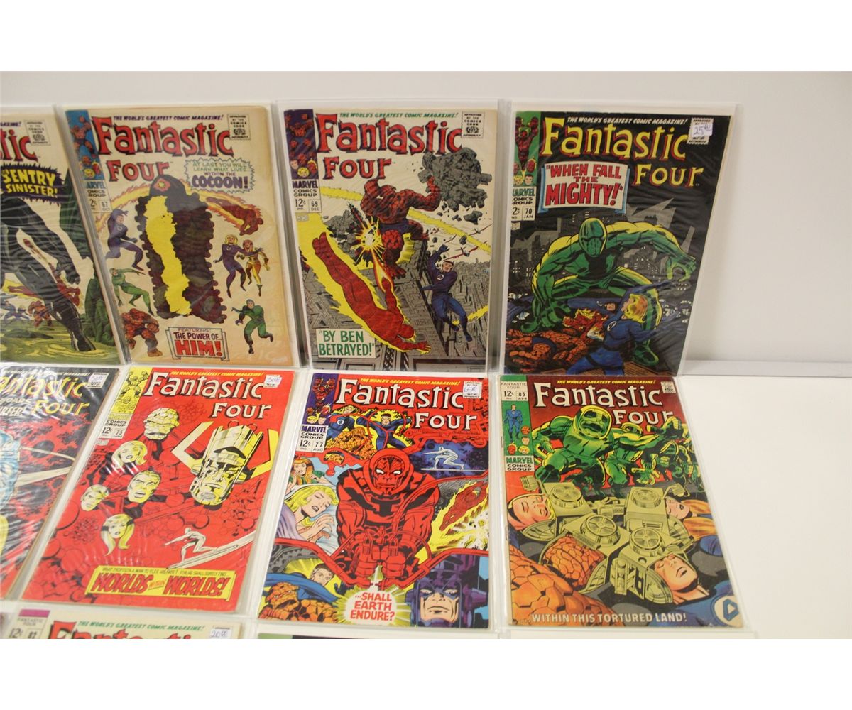 FANTASTIC FOUR (1967-70) #64-98. INCLUDES #72- SILVER SURFER COVER STORY (PRE DATES SS #1) AND #77 12 MID GRADE AVERAGE BOOKS.