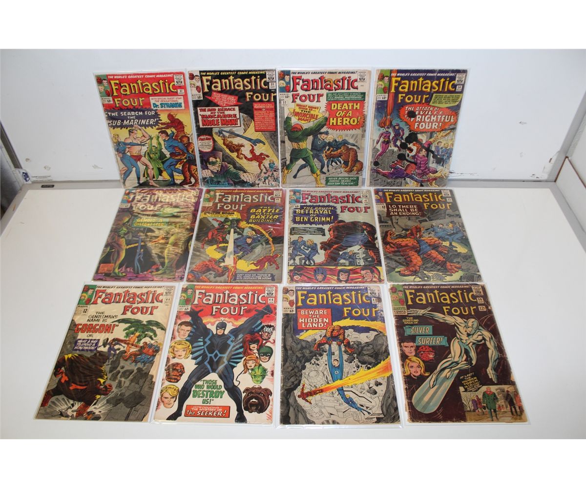 FANTASTIC FOUR #27-50 (1964-66) 12 ISSUE SILVER AGE FF RUN. #27- 1ST DR STRANGE X-OVER & #50 3RD APP. SILVER SURFER, 1ST FULL COVER. LOW GRADE AVG, SOME MID GRADE COPIES