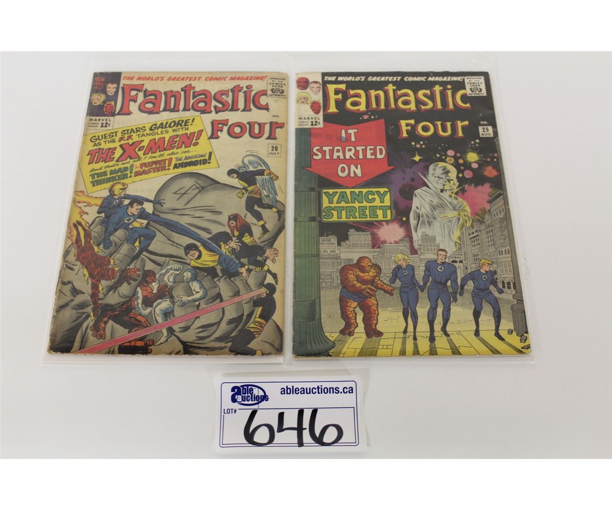 FANTASTIC FOUR #28 *X-MEN CROSSOVER ISSUE LOWER GRADE & #29 HIGHER MID GRADE, SHARP AND SUPPLE, NICE COPY