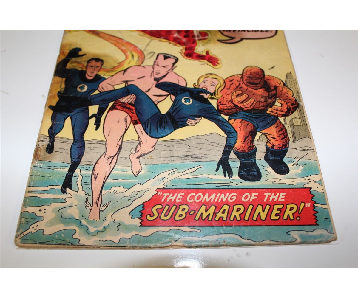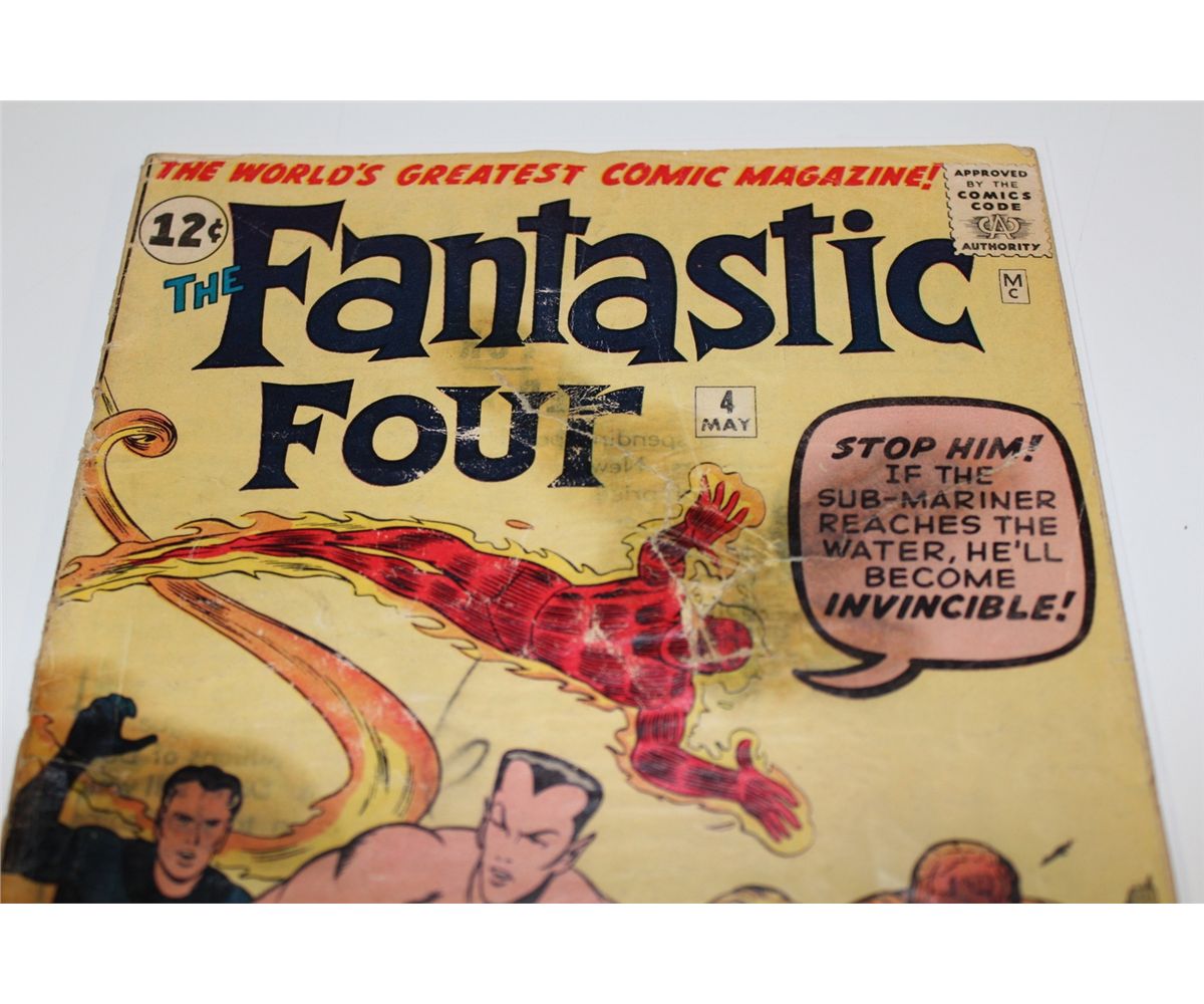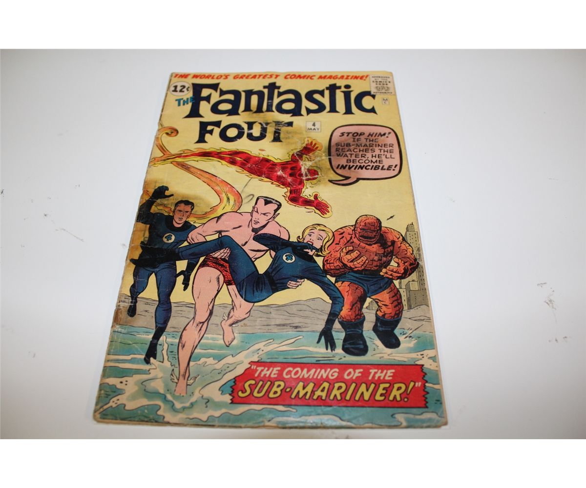FANTASTIC FOUR #4 (1962) 1ST APP. SILVER AGE SUB-MARINER. LOWER GRADE, COVER DETACHED AT BOTTOM STAPLE, SOME TAPE REPAIR TO TEARS ON COVER, SOLID & COMPLETE.