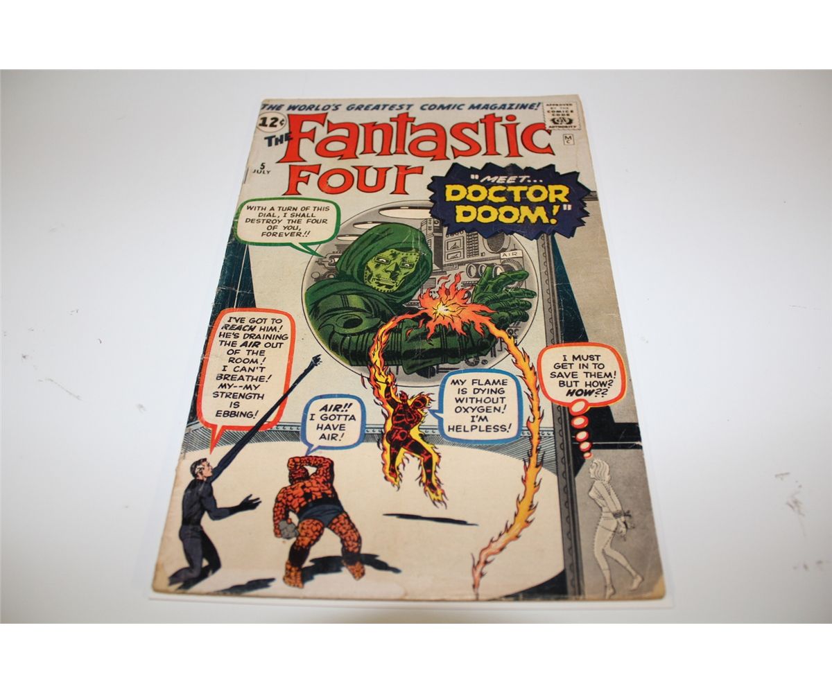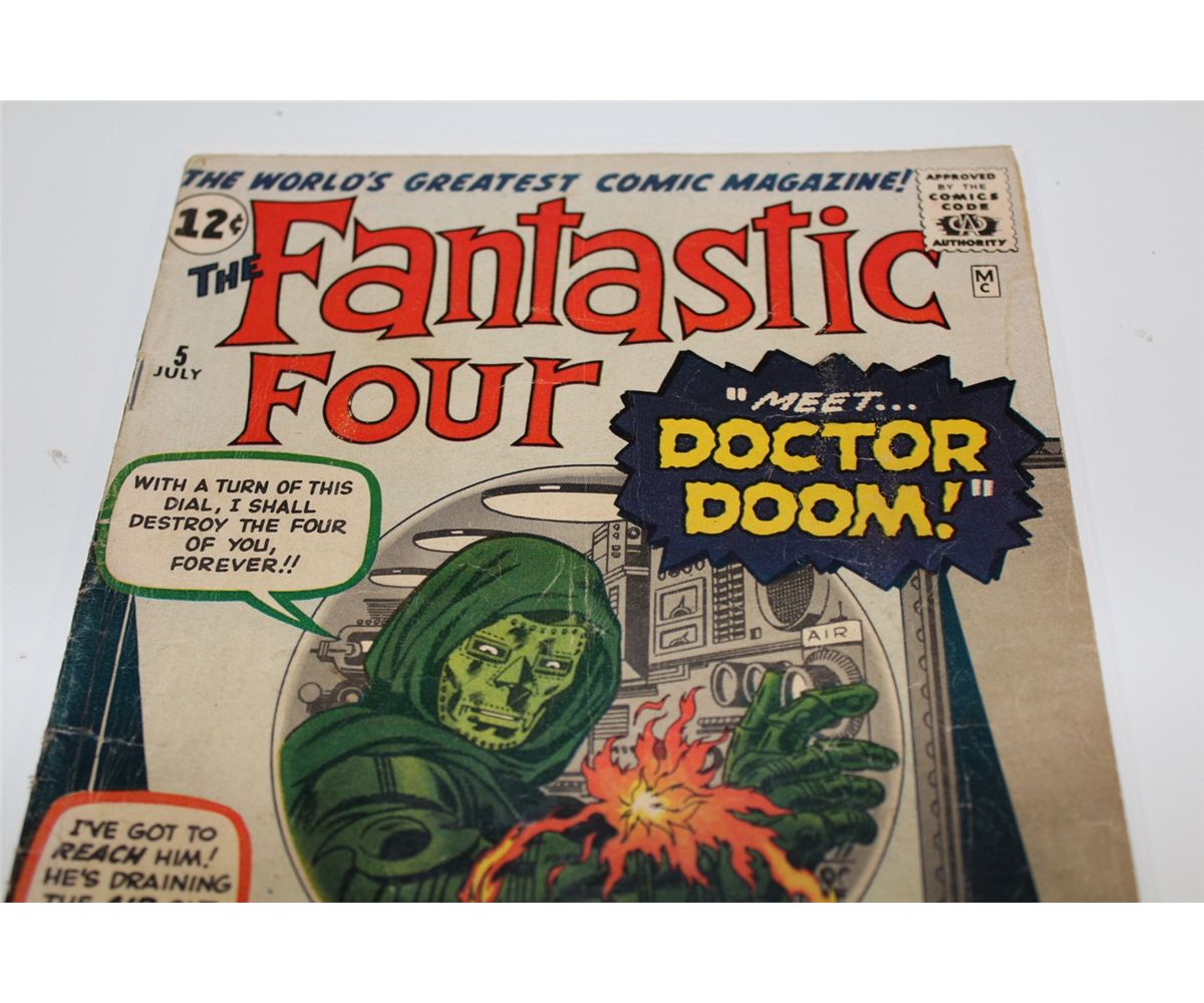 FANTASTIC FOUR #5 (1962) ORIGIN & 1ST APP. DR.DOOM. THIS IS A VERY SOLID LOWER MID GRADE COPY, STRUCTURALLY SOUND. COVER & CENTREFOLD ATTACHED, SUPPLE, NO TAPE, NO PIECES OUT, COMPLETE. NICE!