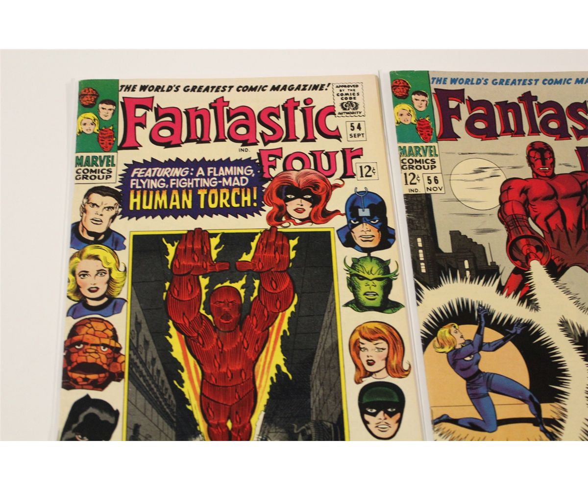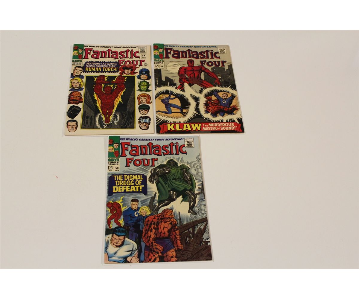 FANTASTIC FOUR #54, 56 & 58 (1966-67) VF/NM PEDIGREE QUALITY, ORIGINAL OWNER! HANDPICKED OFF THE NEWSSTAND & CAREFULLY STORED FOR ALMOST 50 YEARS BY ONE OWNER, THESE COPIES HAVE INCREDIBLE GLOSS & PAGE QUALITY. THEY ARE TIGHT, BRIGHT, FRESH, CRISP & RAZOR SHARP AS IF THEY WERE STILL NEW ON THE STANDS TODAY! WITH VERY MINUTE TO MINIMAL WEAR THESE ARE AMAZING RAW COPIES TO ENJOY & GREAT CGC CANDIDATES!