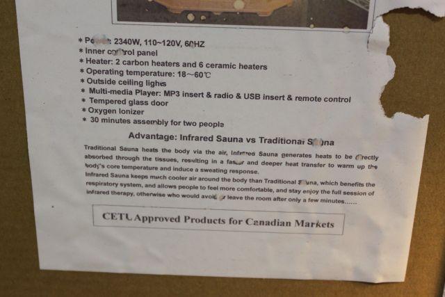 FAR 1300 X 600 X 950 X 1900MM INFRARED SAUNA 2 CARBON HEATERS -  6 CERAMIC HEATERS -  LIGHTING -  MP3 RADIO USB REMOTE CONTROL INSERTS -  OXYGEN IONIZER & INNER CONTROL PANELS