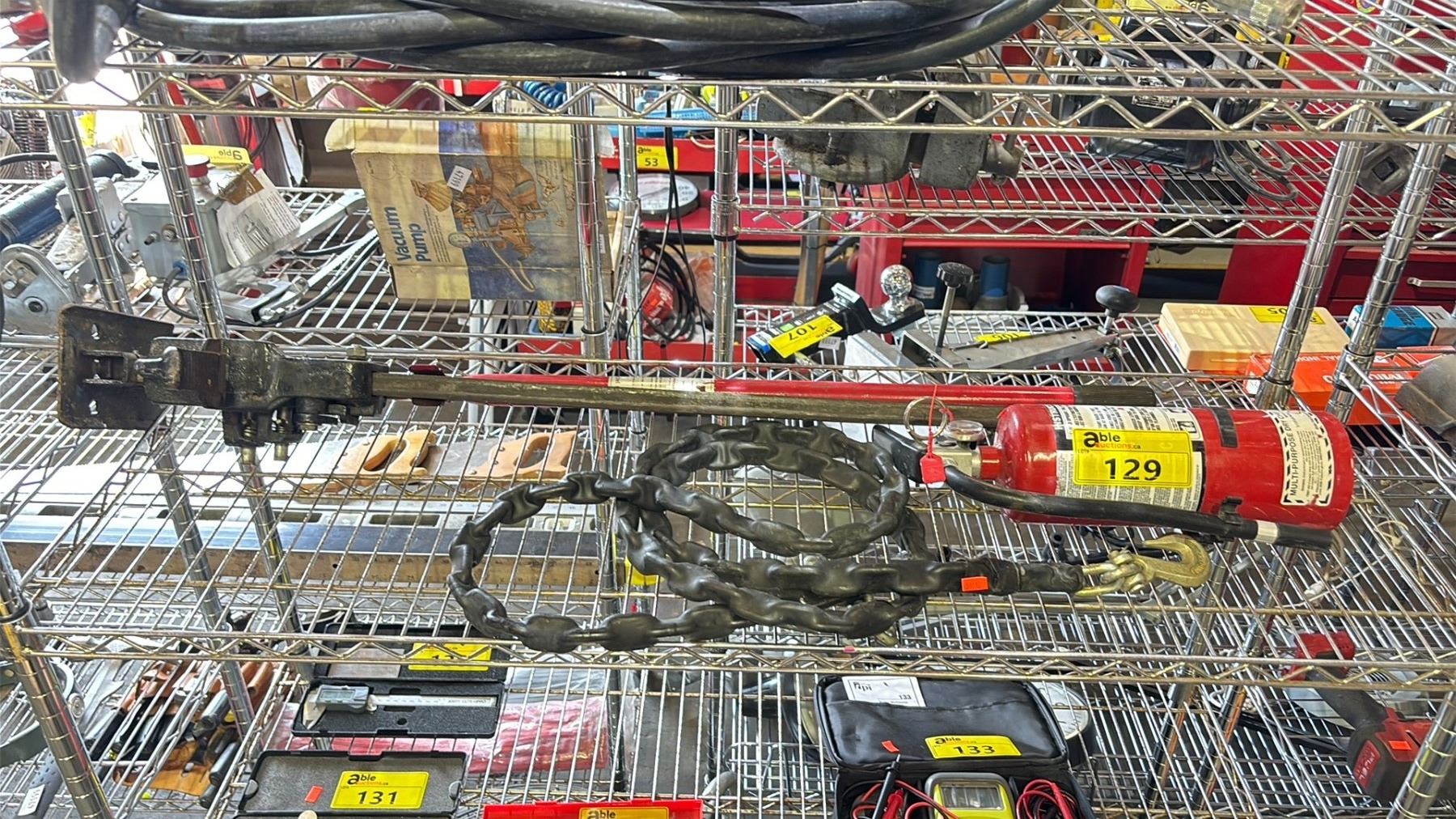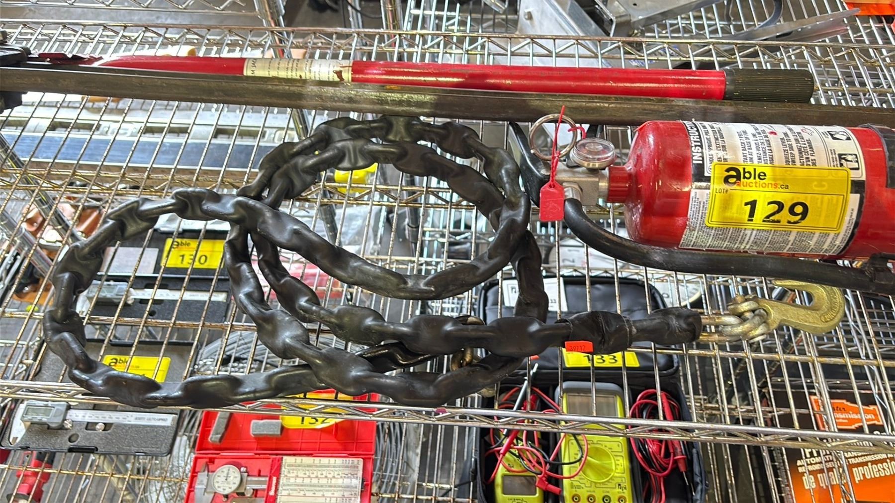 FARM JACK, FIRE EXTINGUISHER & CHAIN WITH CLAMP HOOK