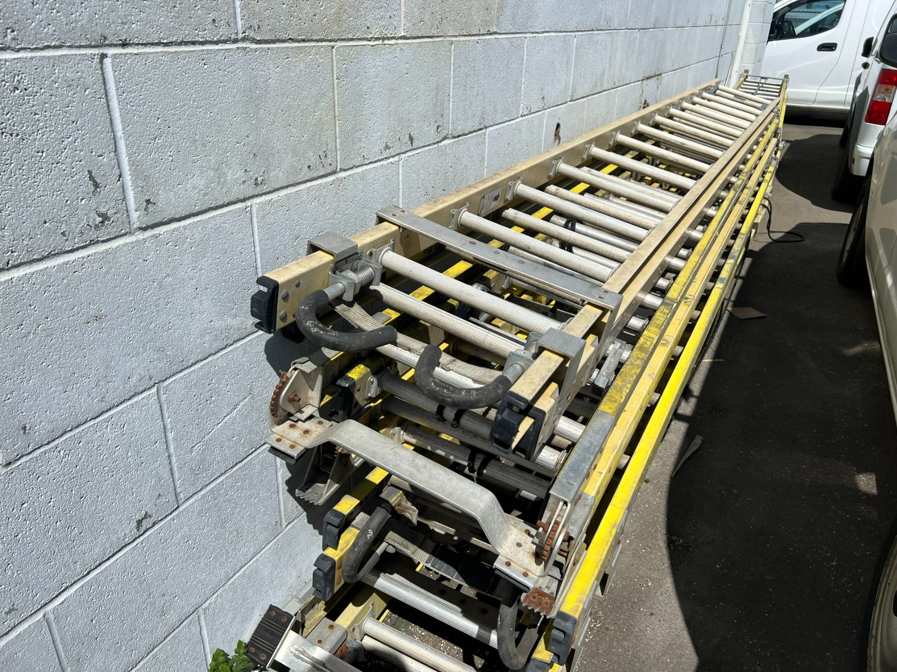 FEATHERLITE 375 28' FIBREGLASS EXTENSION LADDER WITH SAFETY HOOKS. NEW MSRP AT GRAINGER $1000