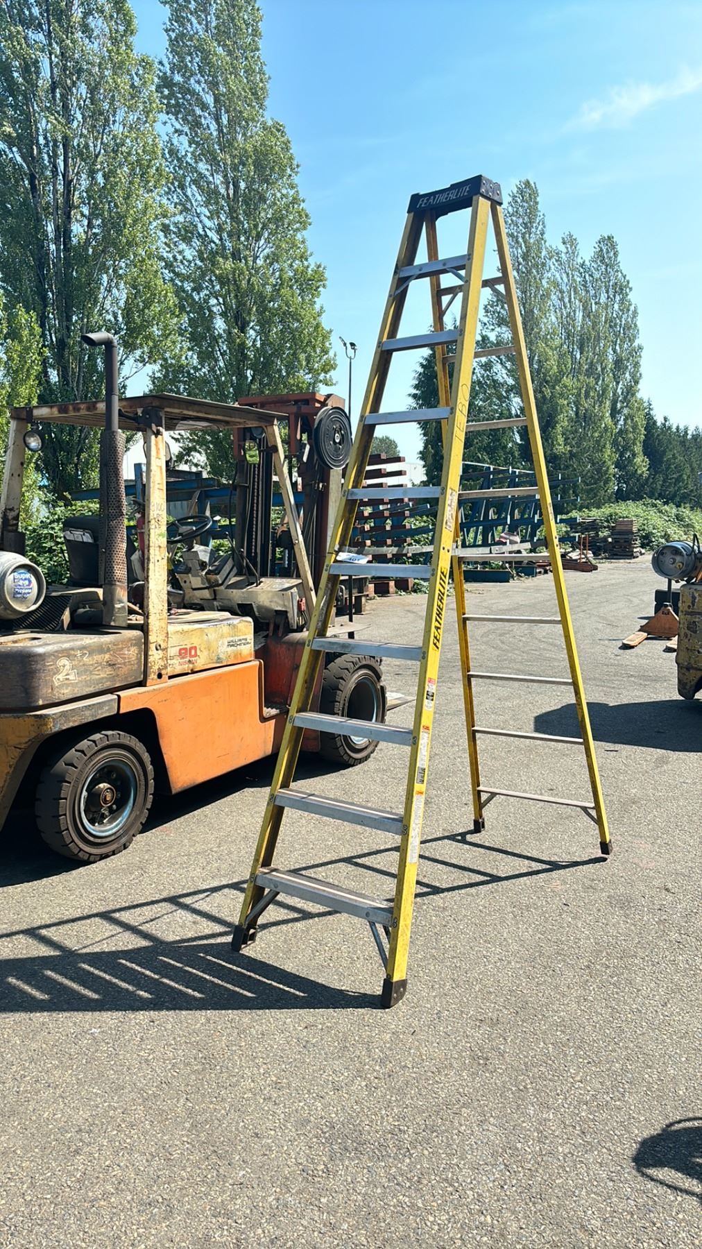 FEATHERLITE FIBREGLASS & ALUMINUM 10' STEP LADDER WITH A 300 LB CAPACITY