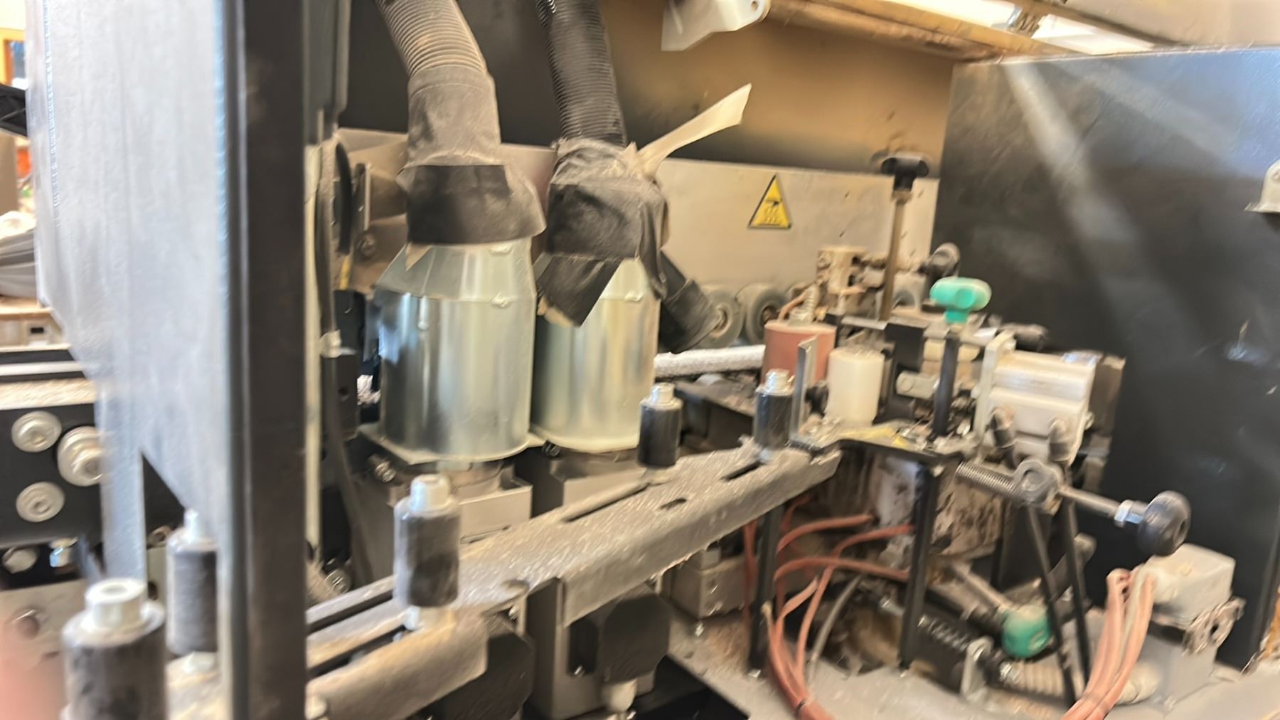 FELDER G 380 EDGE BANDER WITH DUST EXTRACTORS. MANUFACTURED 2022. 220 V, SINGLE PHASE, 5MM - 45MM, 8M PER MINUTE FEED RATE.
