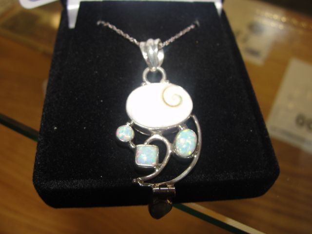 FIRE OPAL AND SHIVA EYE STERLING SILVER NECKLACE