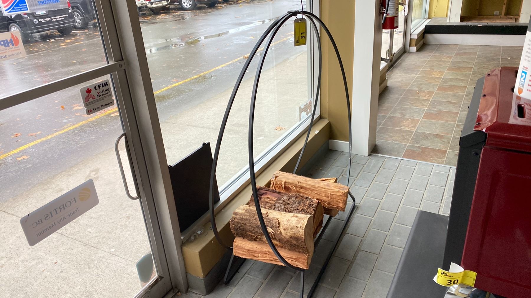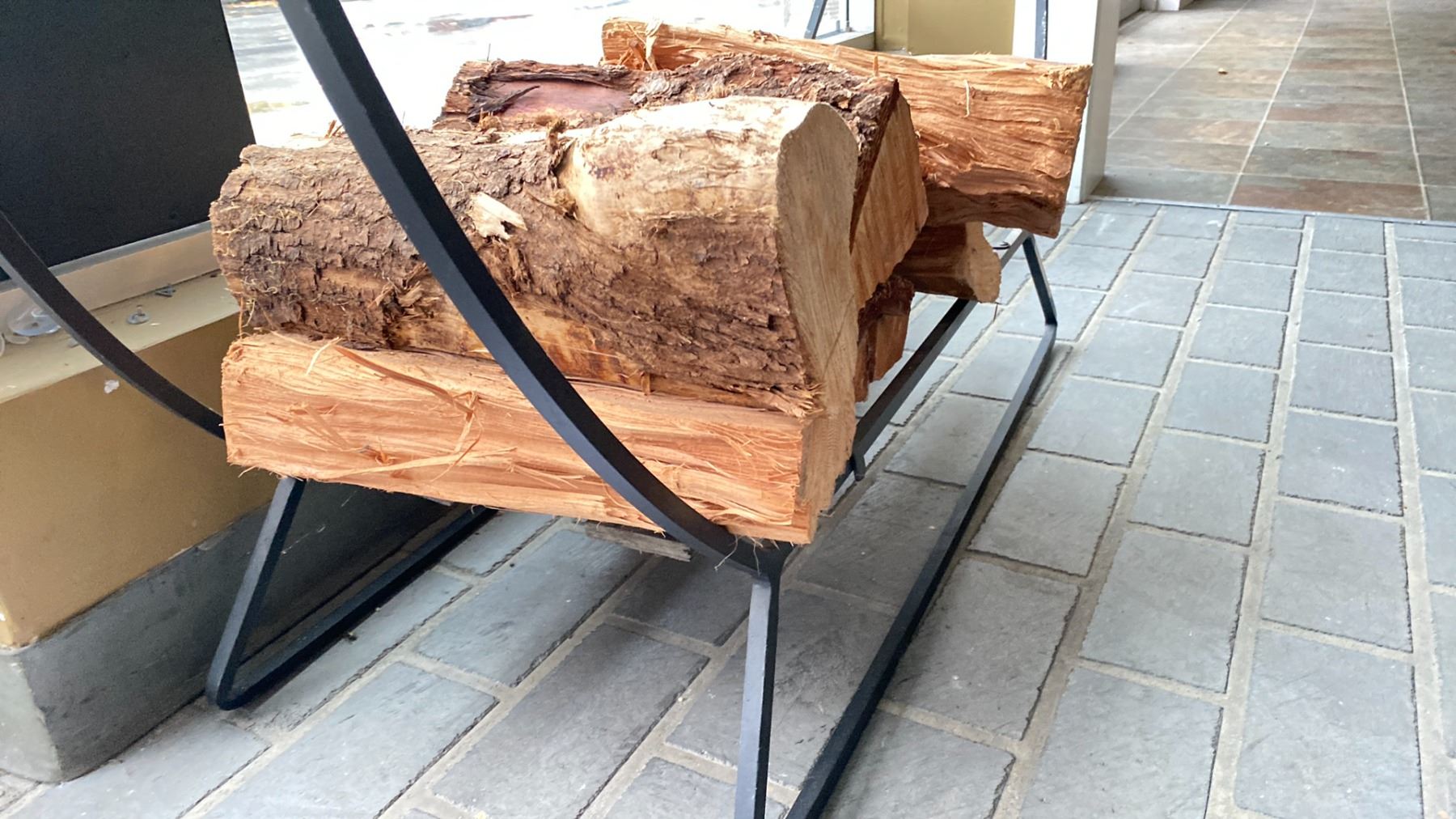 FIREWOOD STAND 4-FEET ROUND. INCLUDES FIREWOOD (IF ANY LEFT).