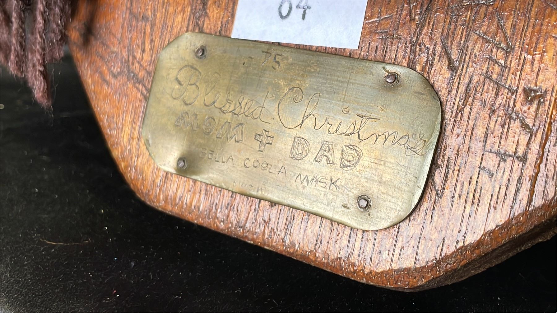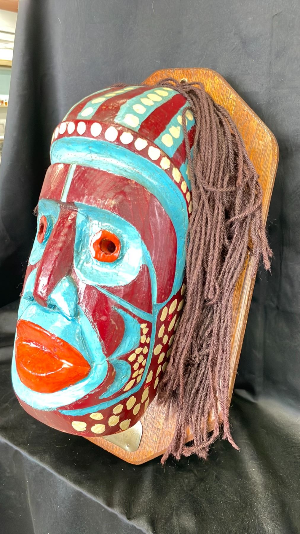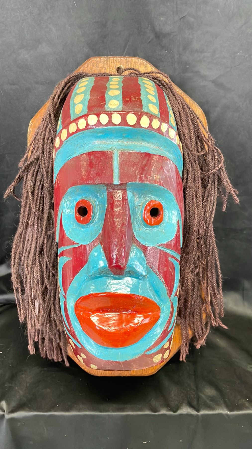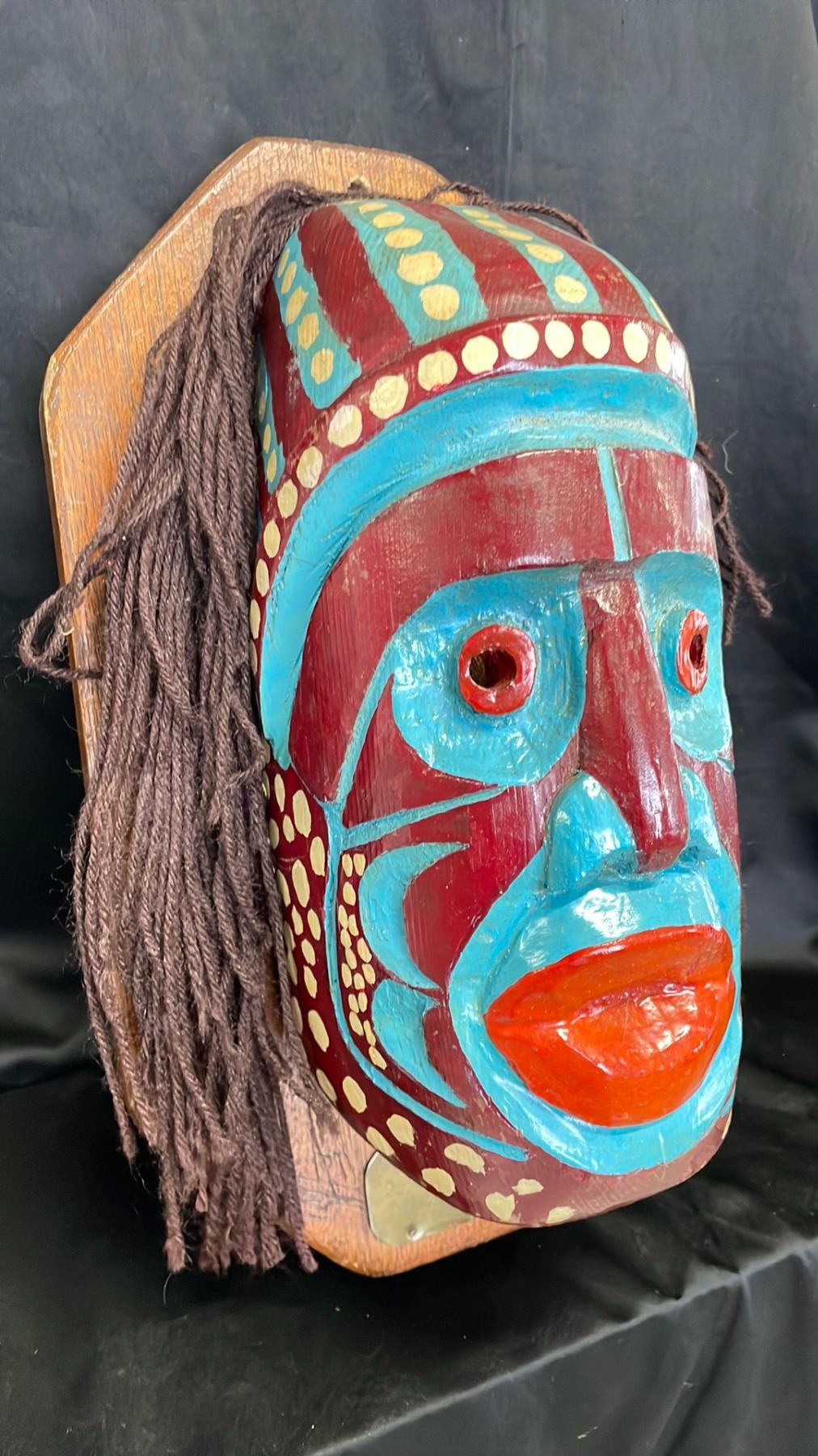 FIRST NATIONS BELLA COOLA MASK ON WOOD BY DAVID HOWE 1970'S