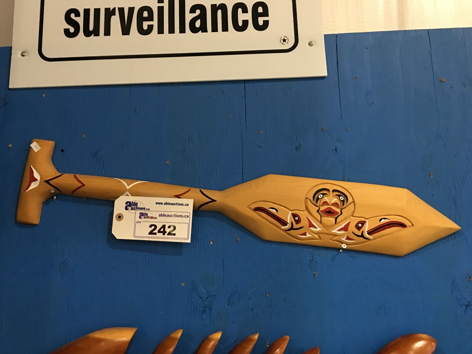 FIRST NATIONS CARVED YELLOW CEDAR PADDLE "RAVENS LIFTING THE MOON" BY KEN EASTON