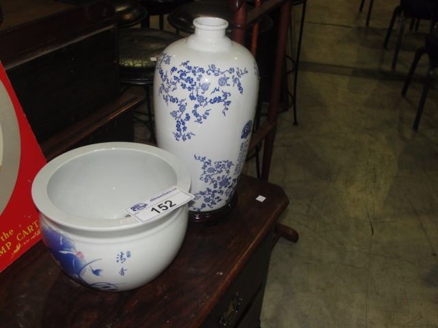 FISHBOWL AND VASE WITH ONE ROSEWOOD STAND