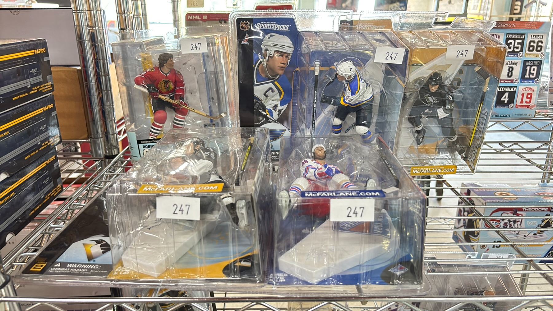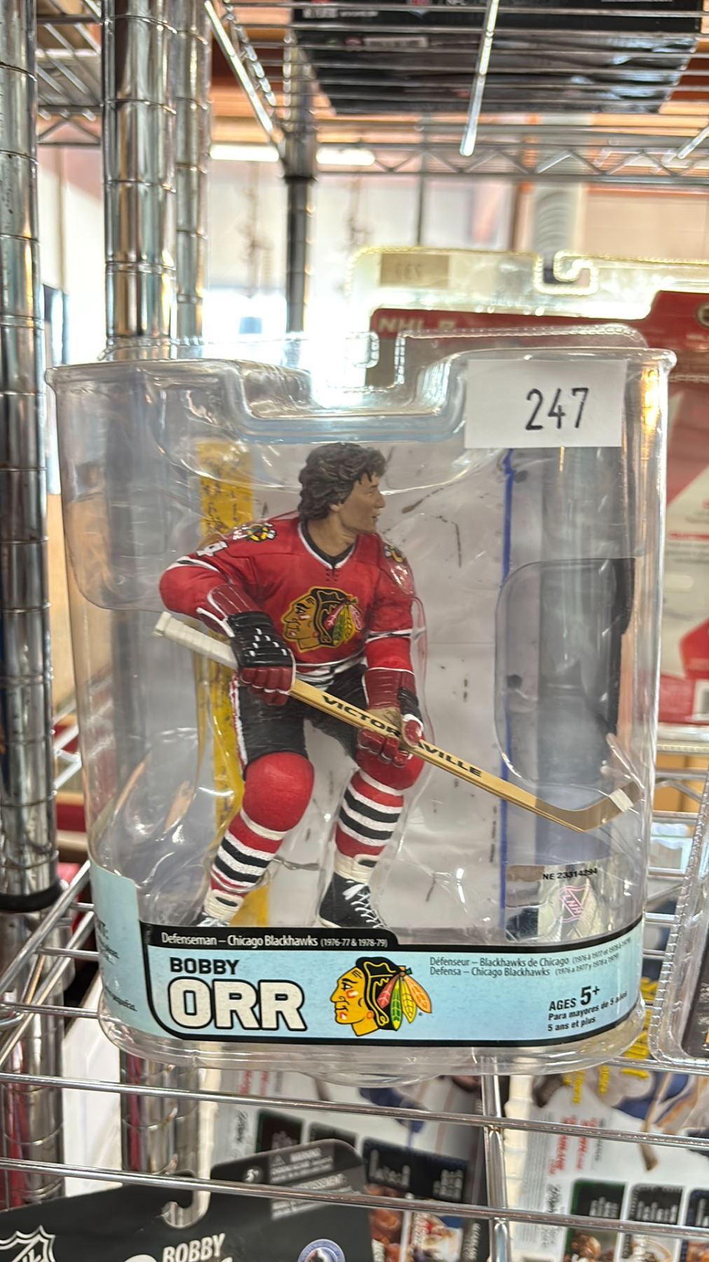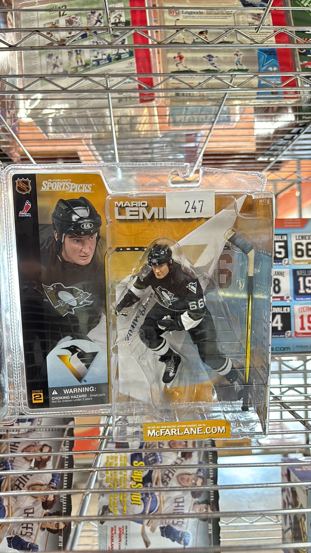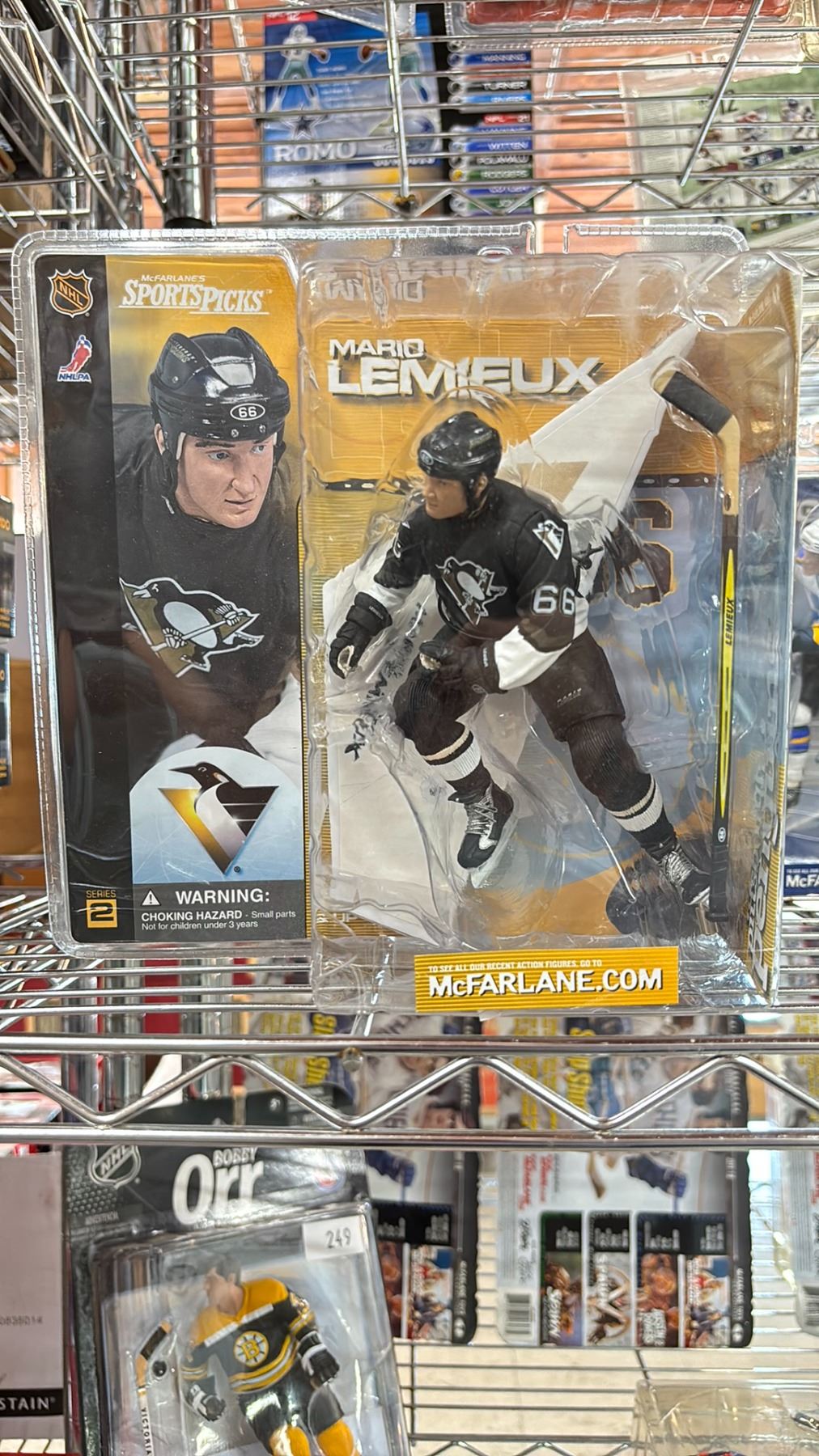 FIVE NHL ACTION FIGURES - BOBBY ORR, CHRIS PRONGER, MARIO LEMIEUX, & ERIC LINDROS