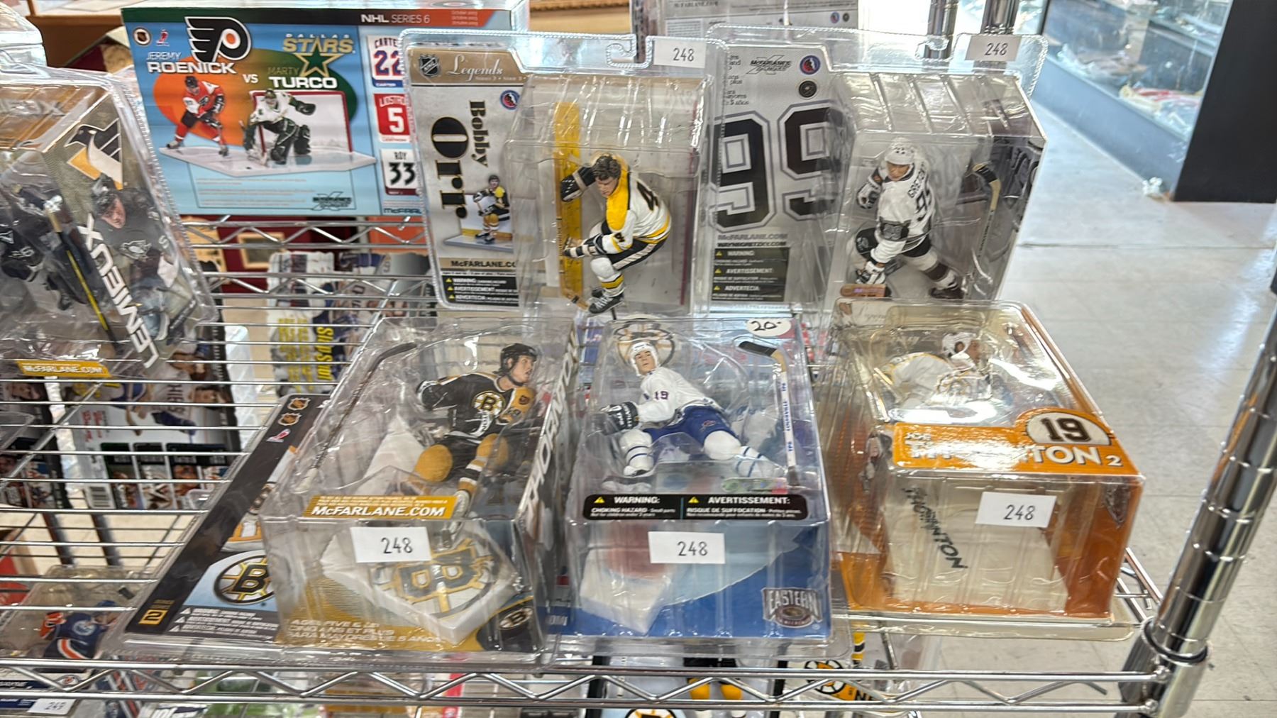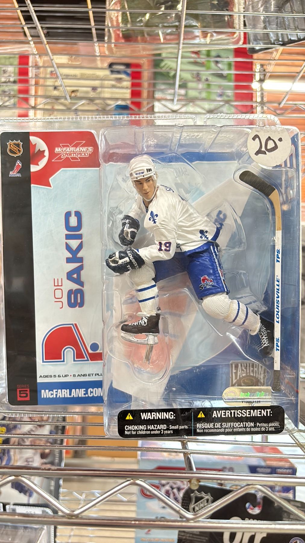 FIVE NHL ACTION FIGURES - BOBBY ORR, WAYNE GRETZKY, JOE THORNTON & JOE SAKIC