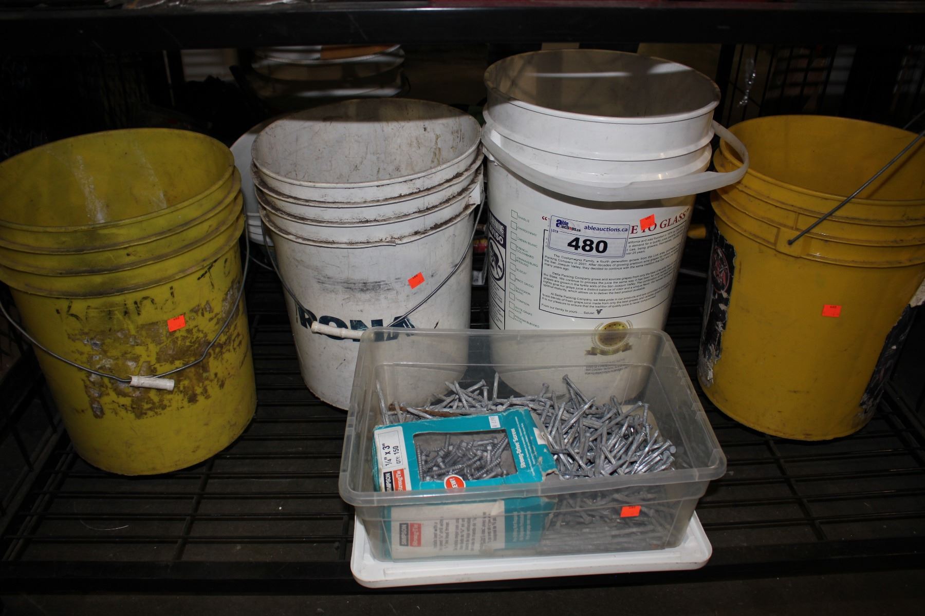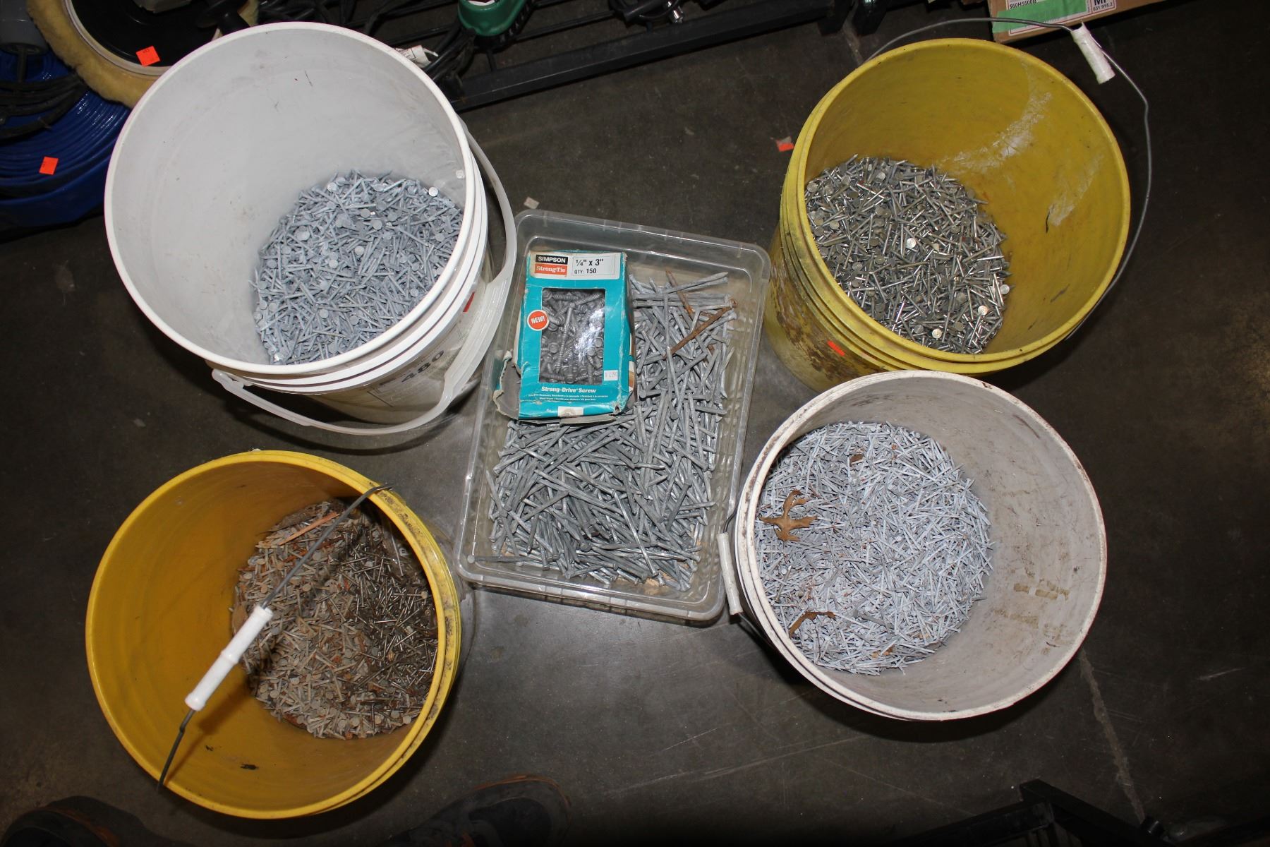 FIVE TUBS OF ASSORTED NAILS