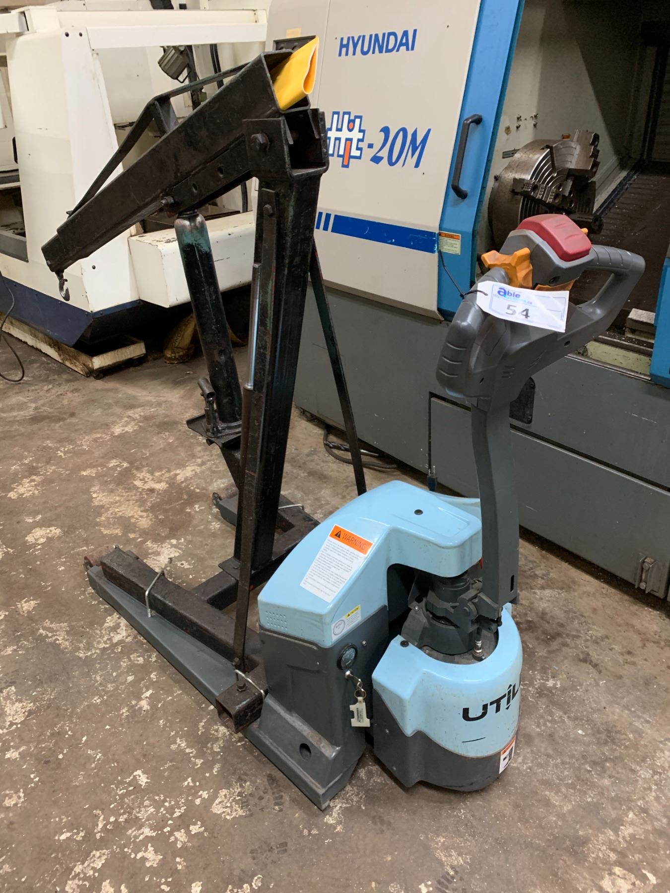*FL* UTILEV ELECTRIC PALLET JACK WITH REMOVABLE CRANE *REQUIRES FORKLIFT FOR REMOVAL, NO FORKLIFT ONSITE*