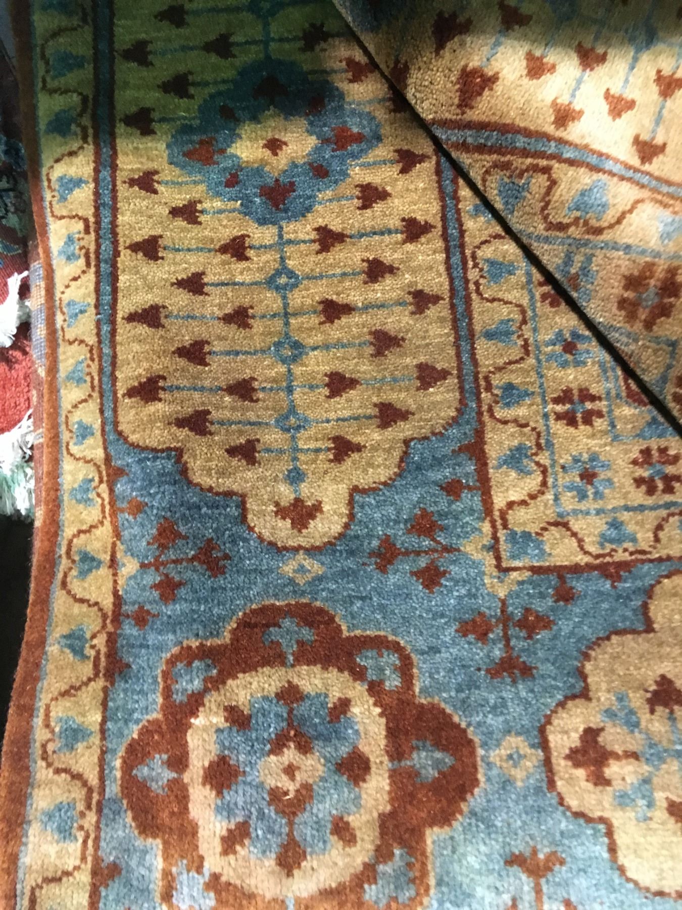 FLORAL ANTIQUE FINISH WOOL 9' X 6' BROWN, TURQUOISE, BEIGE HAND WOVEN PERSIAN AREA RUG GALLERY PRICE $8,400